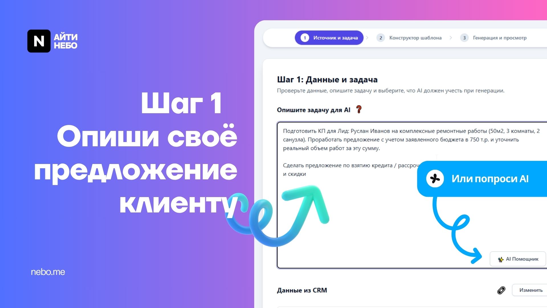 Задача для AI: Опишите своими словами суть предложения для клиента. Чем подробнее задача, тем точнее будет результат.