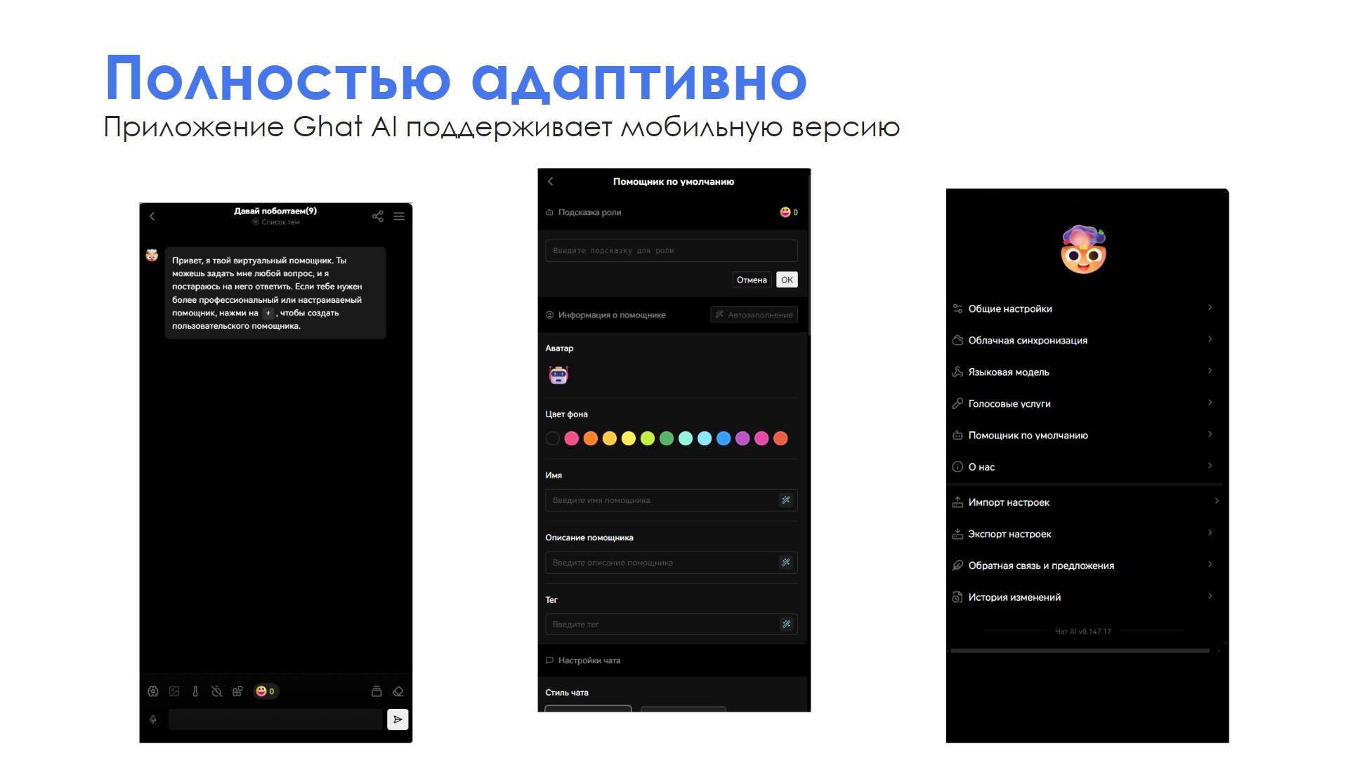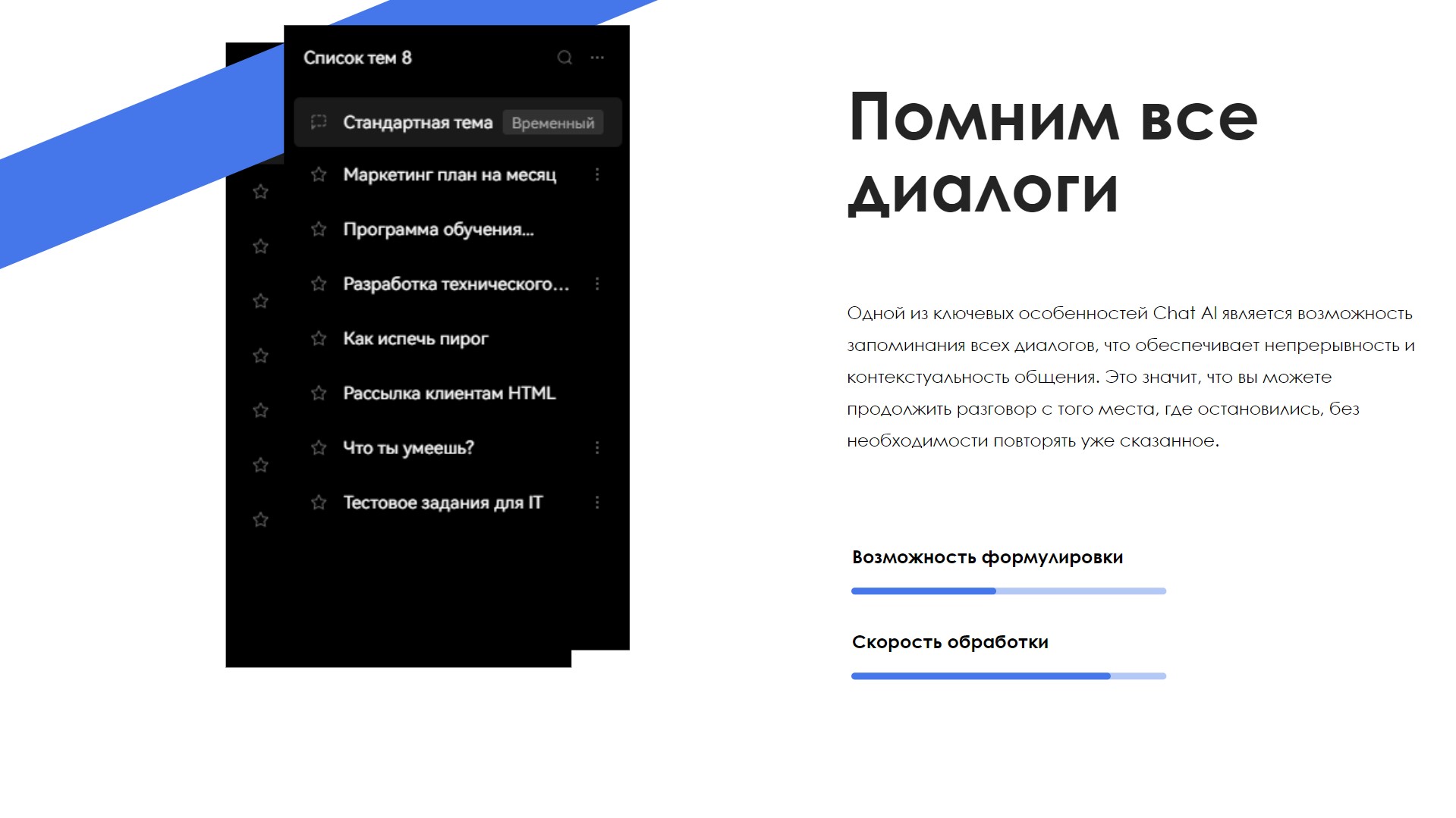 Регулярные обновления Мы постоянно работаем над улучшением Chat AI, регулярно выпускаем обновления и добавляем новые функции. Это гарантирует, что пользователи всегда получают доступ к самым современным и передовым технологиям в области ИИ.