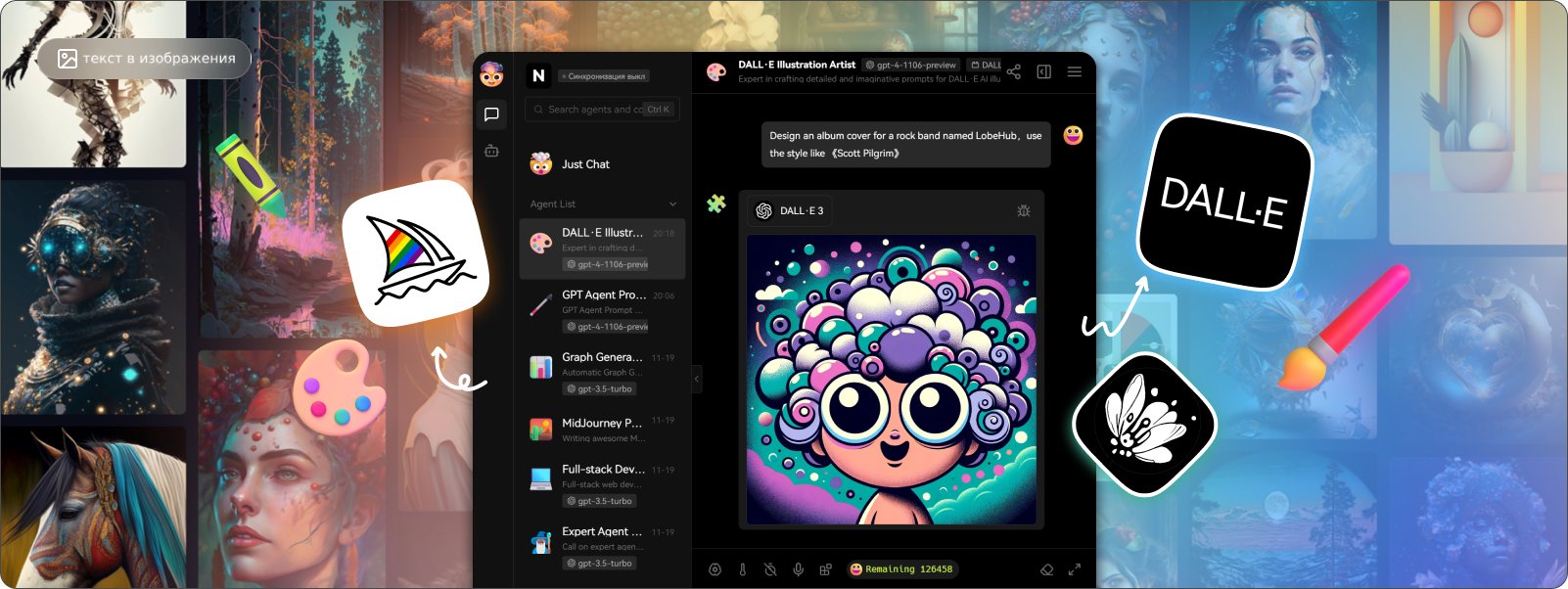 Генерация изображений из текста с поддержкой технологий генерации изображений из текста, таких как DALL-E 3, MidJourney и Pollinations, Chat AI позволяет пользователям создавать изображения в диалоге с ИИ.