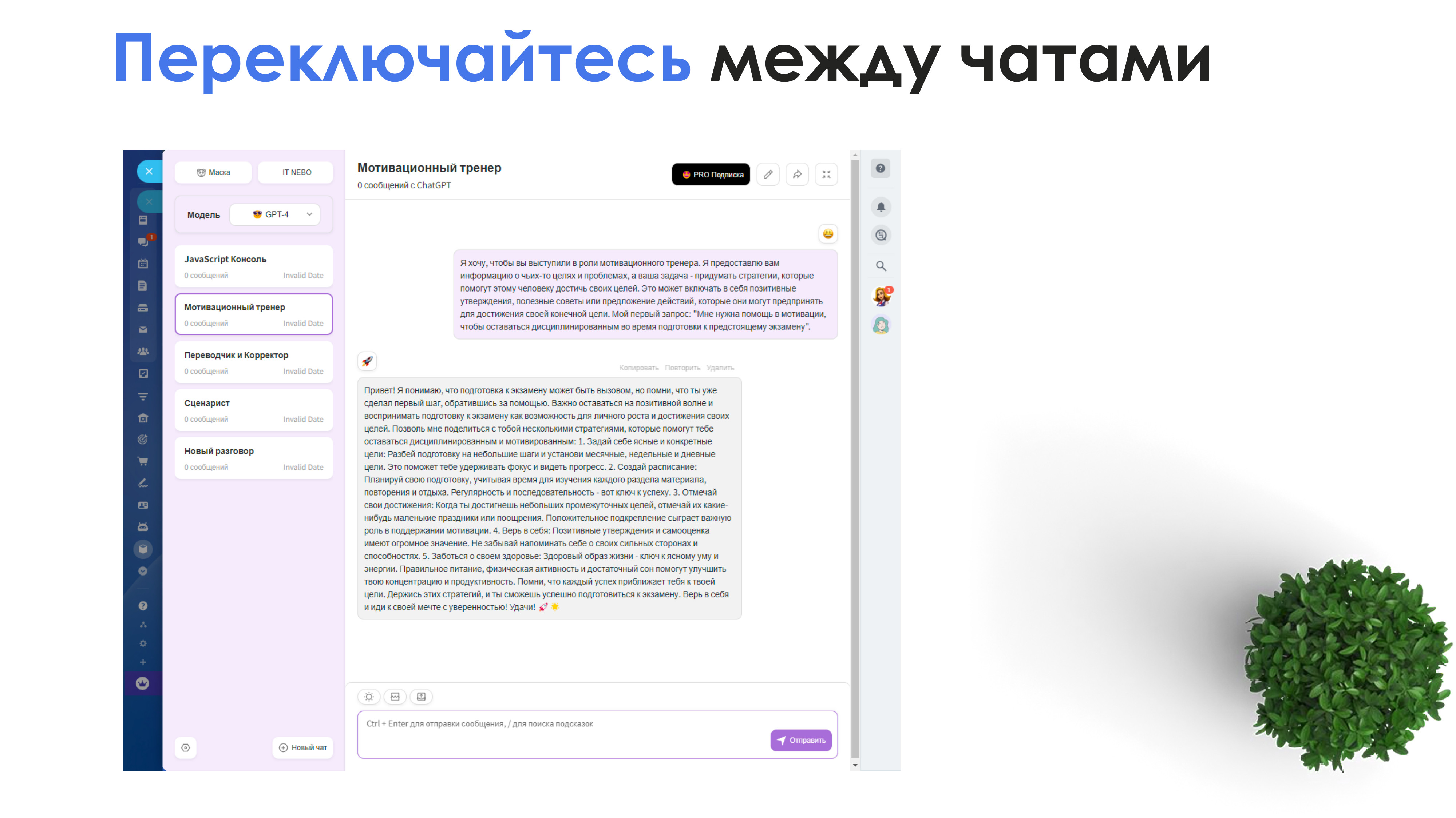 Помощь в коммуникации с клиентами: с помощью интеллектуального анализа запросов и быстрого формирования ответов, ChatGPT24 обеспечит качественную поддержку клиентов и поможет вам сэкономить время на CRM-задачах.