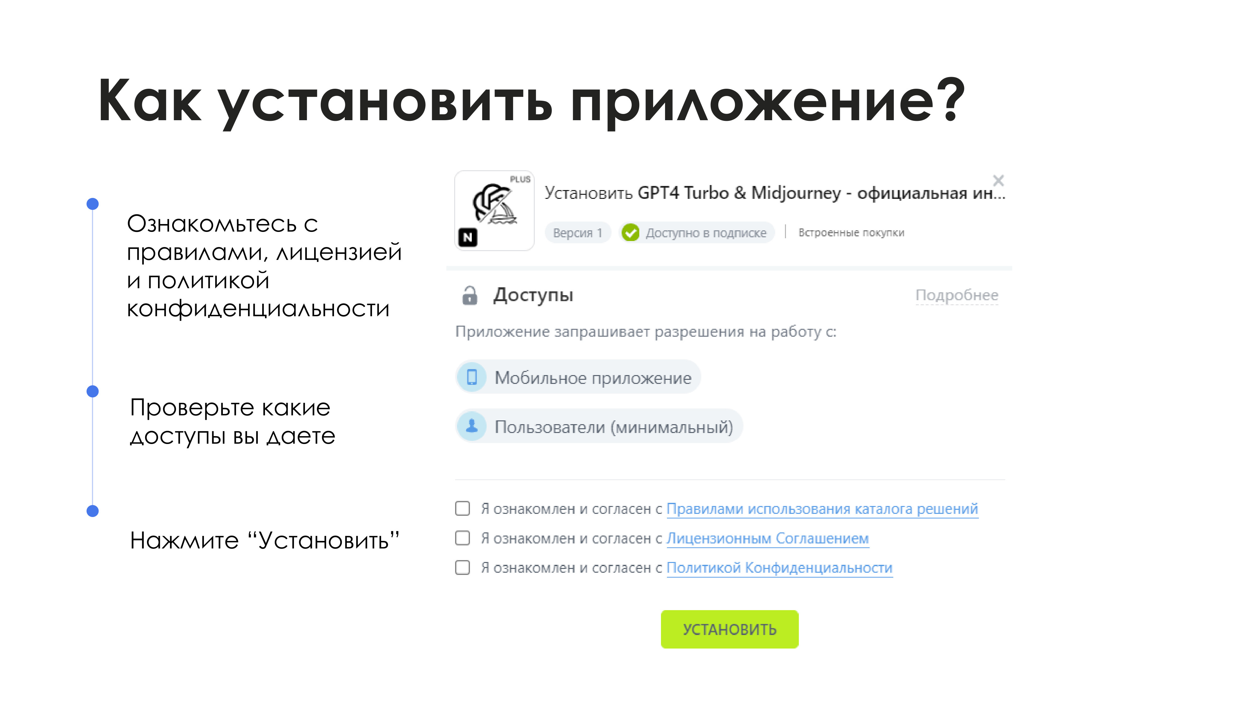 - После успешной установки приложение будет доступно в вашем аккаунте Битрикс24, и вы сможете начать пользоваться его функционалом.