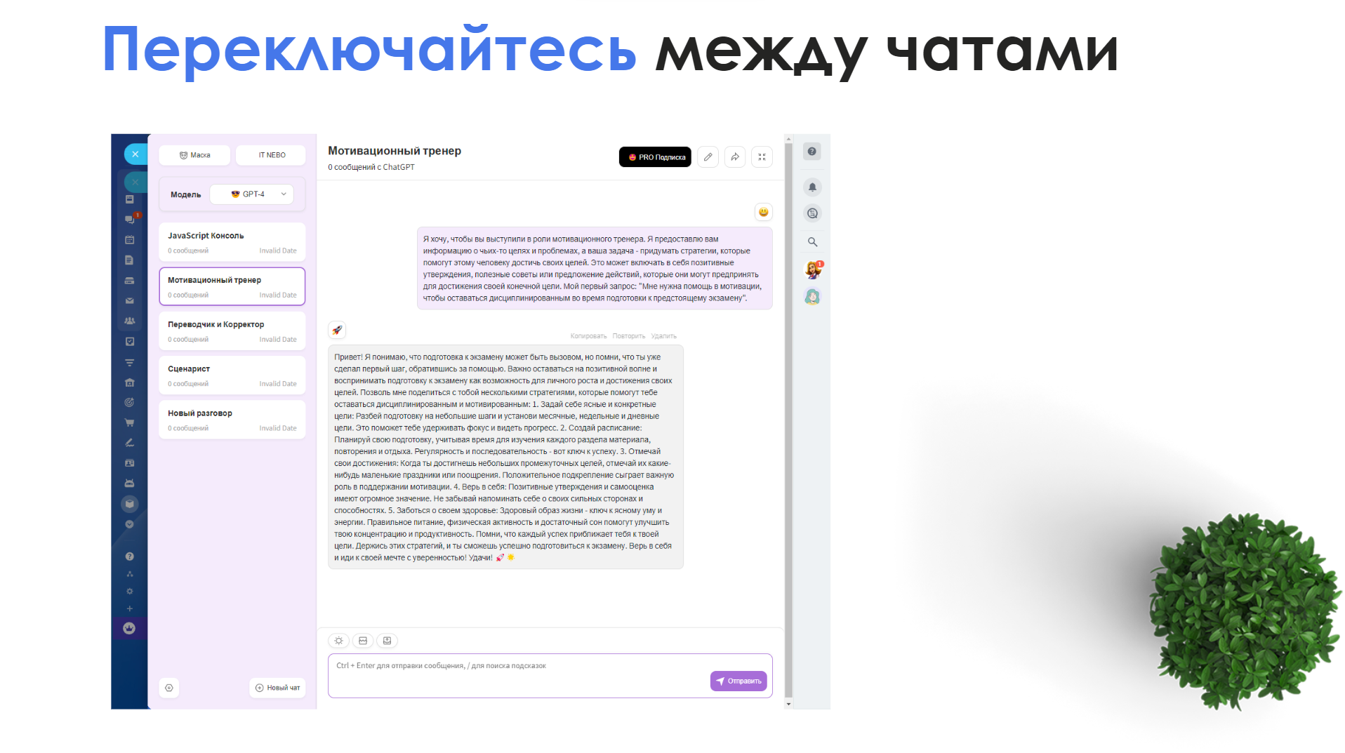- Выберите подписку для получения ежедневного пополнения токенов и доступа к расширенным возможностям GPT-4.
