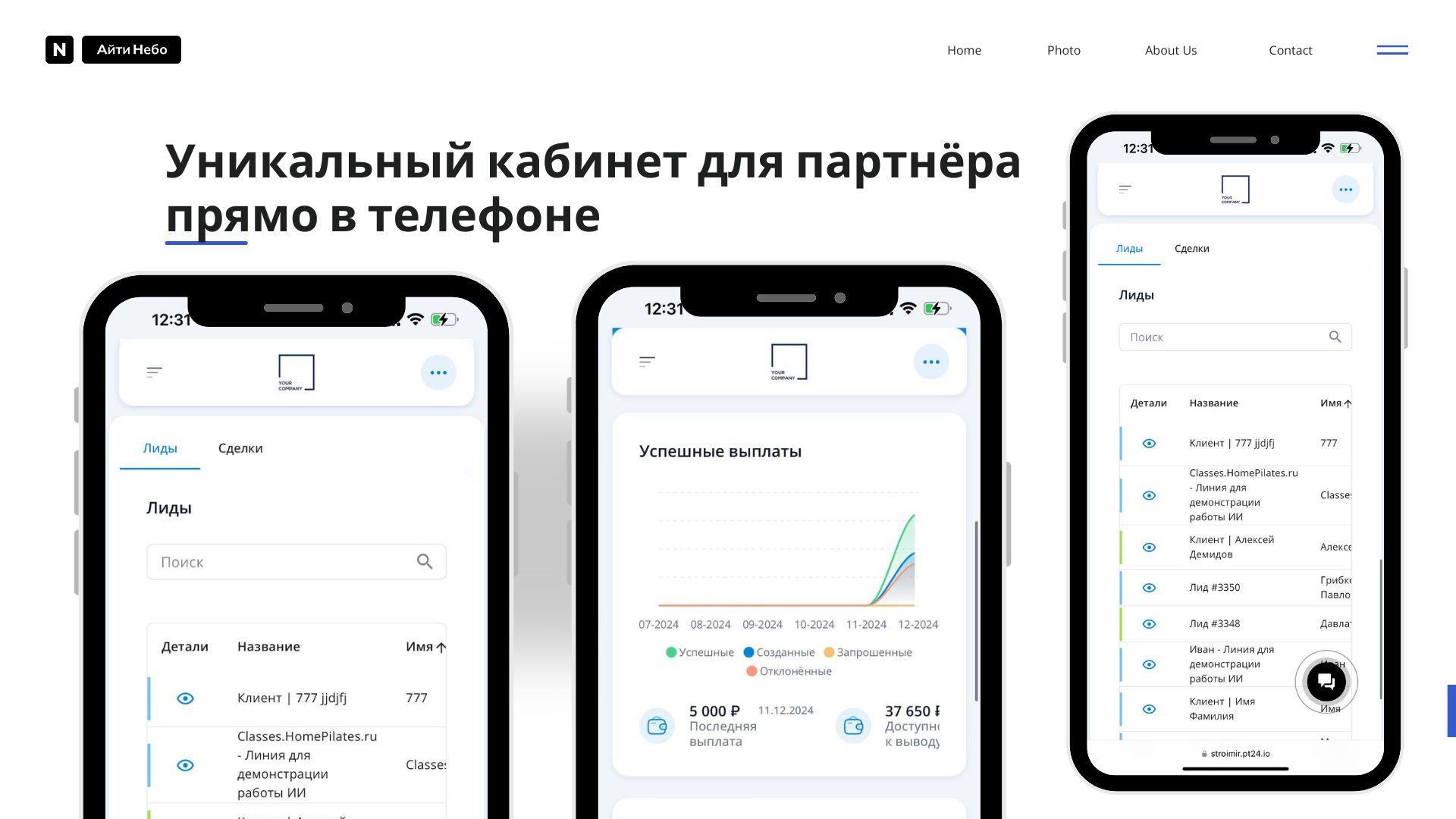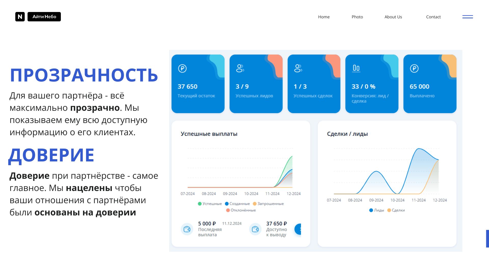 - Анализ: Быстрый доступ к ключевым метрикам по лидам, сделкам и выплатам.