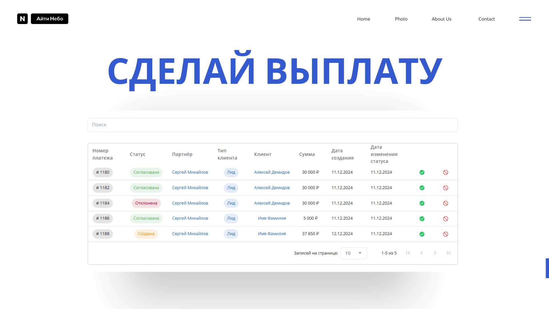 - Контроль: Удобная таблица истории выплат клиентам.