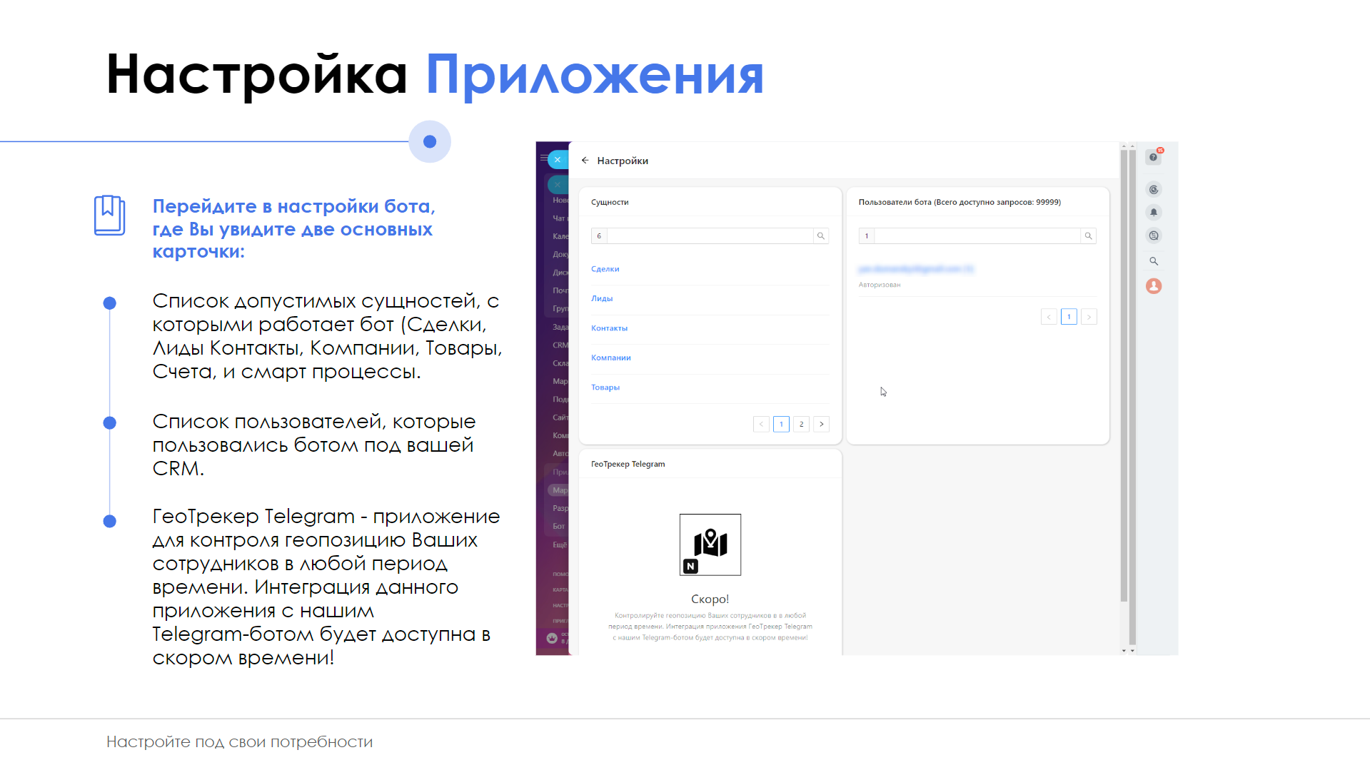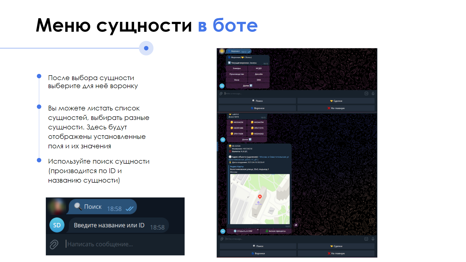 Приложение предлагает удобную интеграцию CRM системы Битрикс24 с Telegram, позволяя автоматизировать управление откликами на вакансии и клиентскими запросами. Этот бот упрощает повседневные задачи CRM, обеспечивая гибкое и эффективное взаимодействие с клиентами и кандидатами.