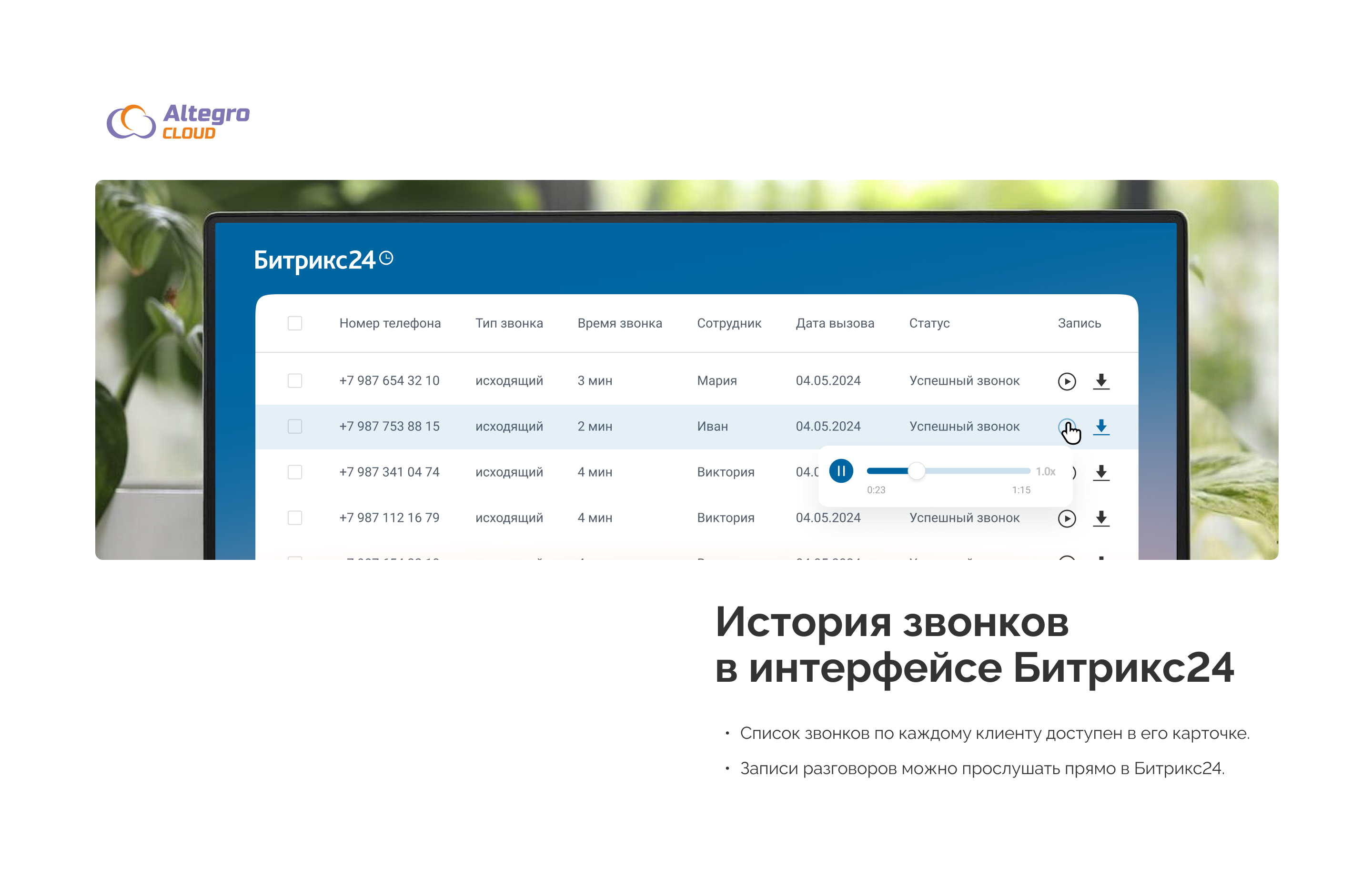 Возможности интеграции Мобильного виртуального офиса AltegroCloud и Битрикс24: