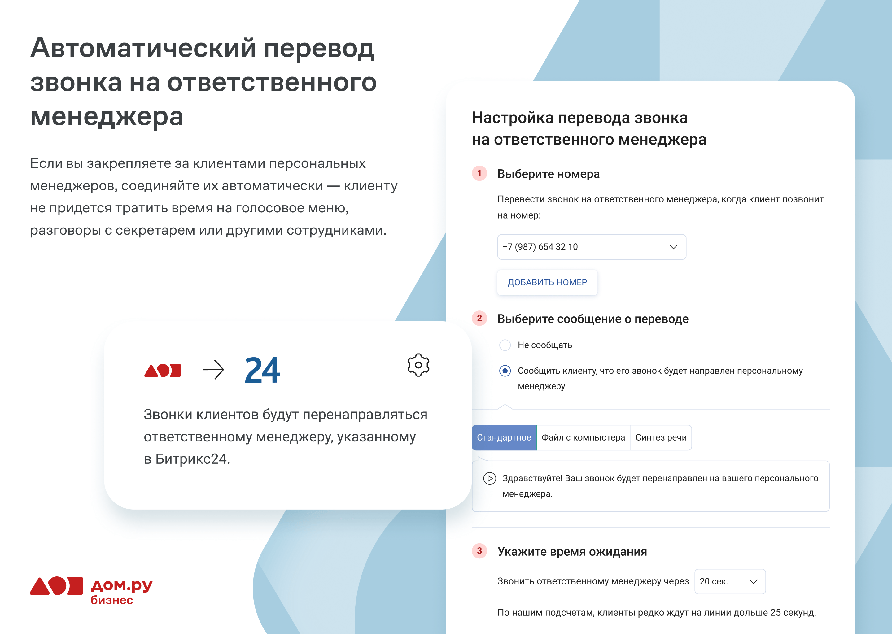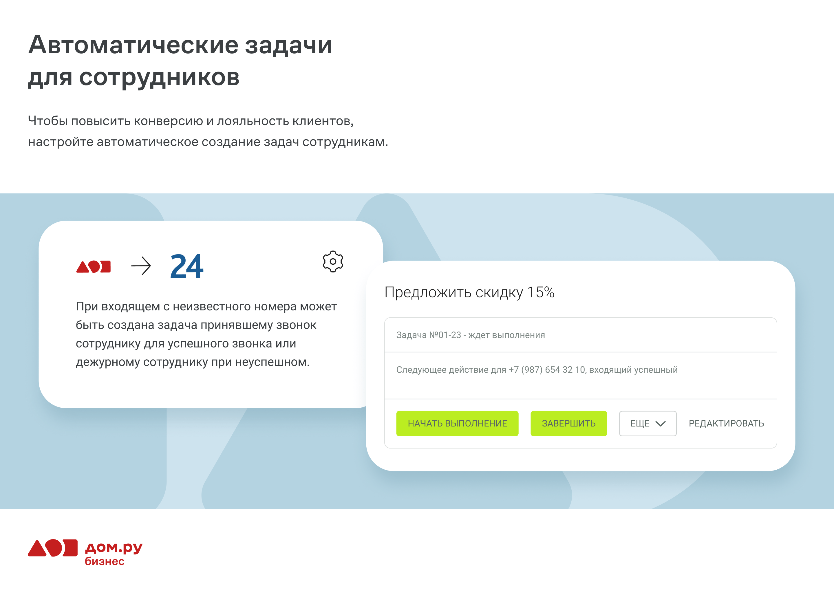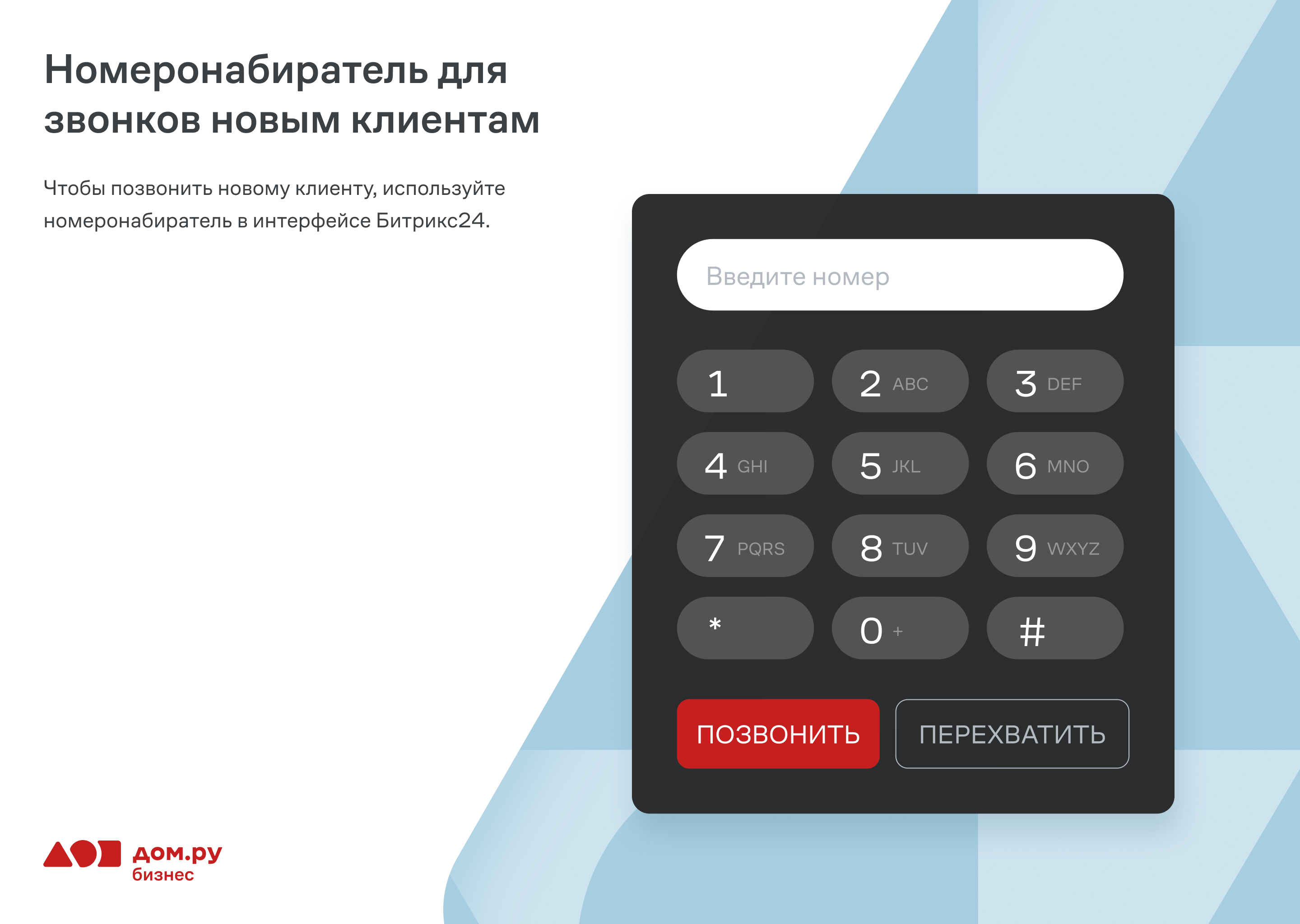 Интегрируйте Облачную АТС от Дом.ру Бизнес и Битрикс24 для автоматизации ваших продаж.