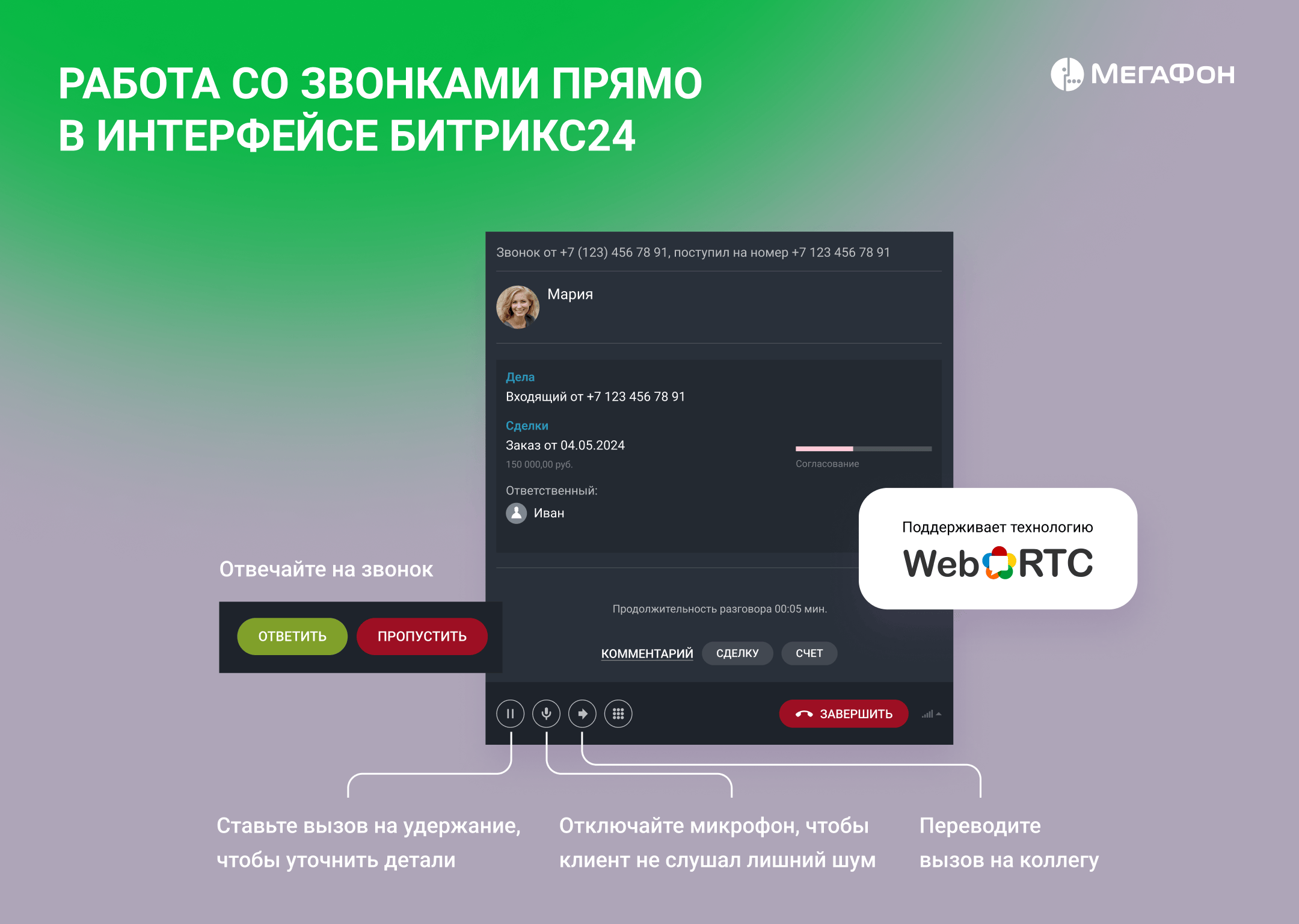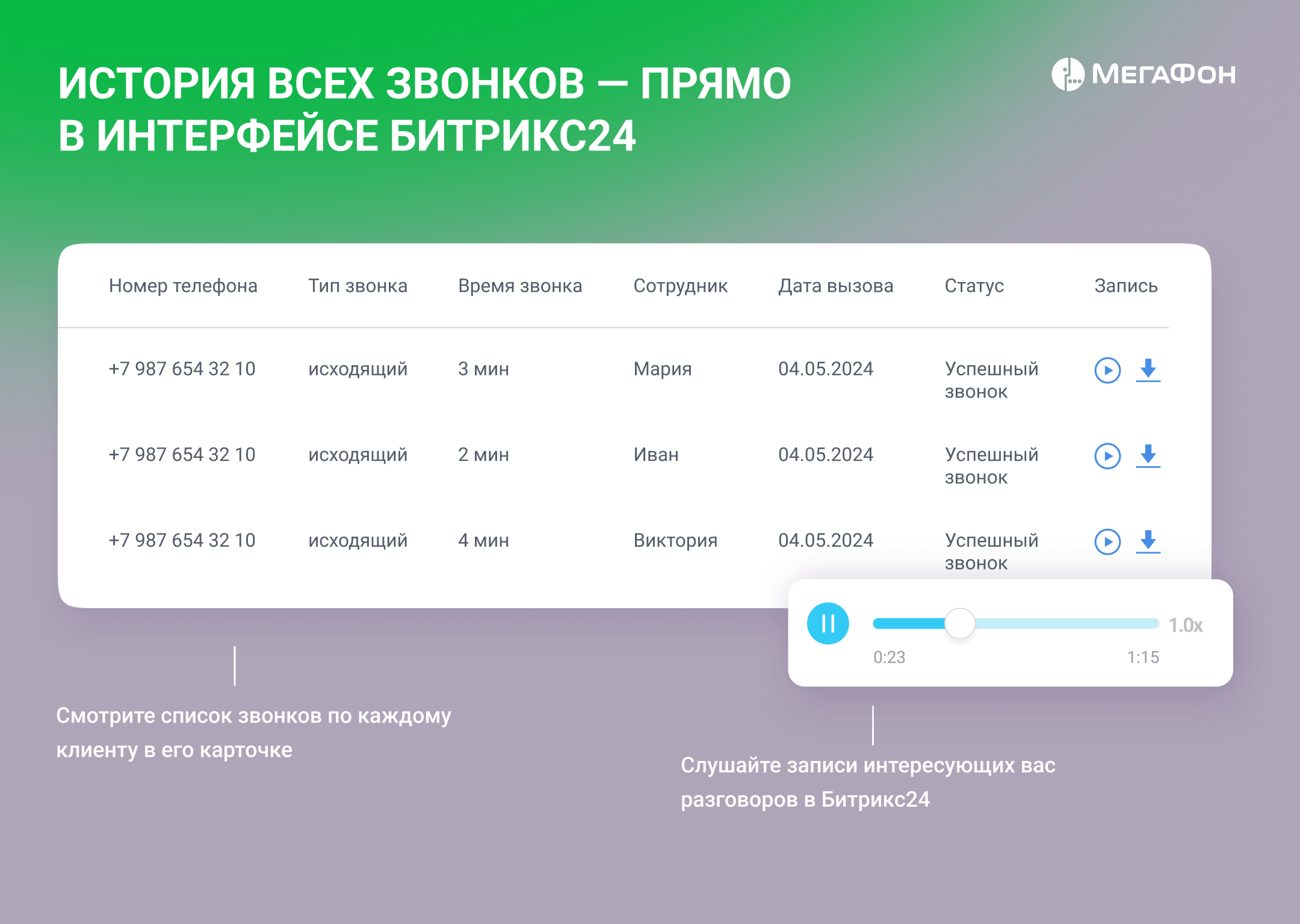 Возможности интеграции Виртуальной АТС МегаФон и Битрикс24