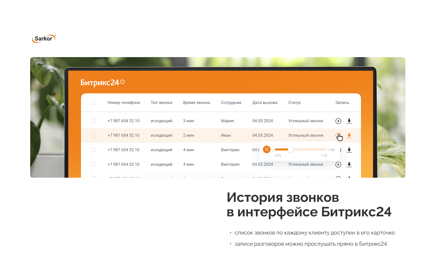 Возможности интеграции Облачной АТС Sarkor (первой виртуальной АТС в Республике Узбекистан) и Битрикс24: