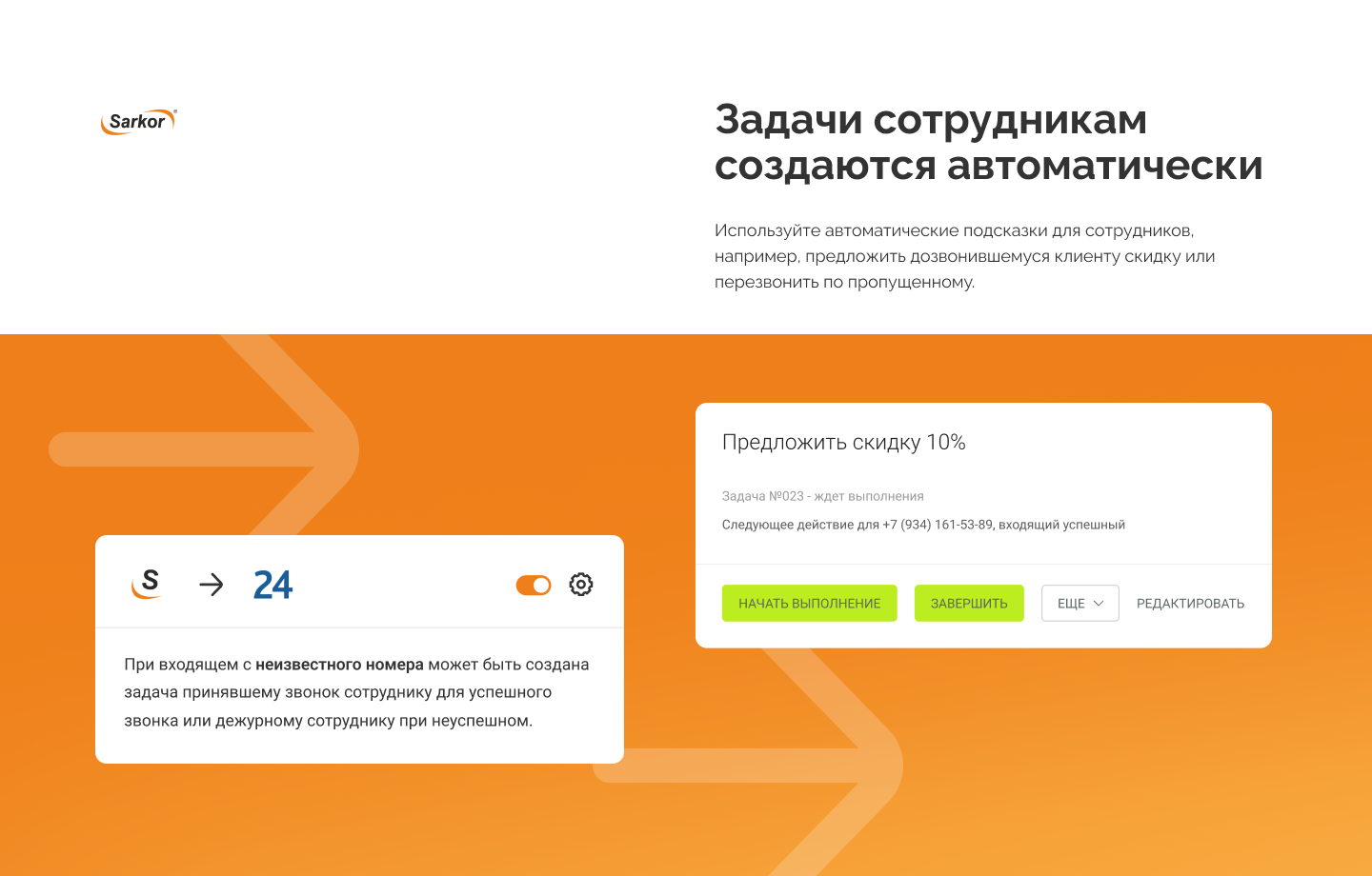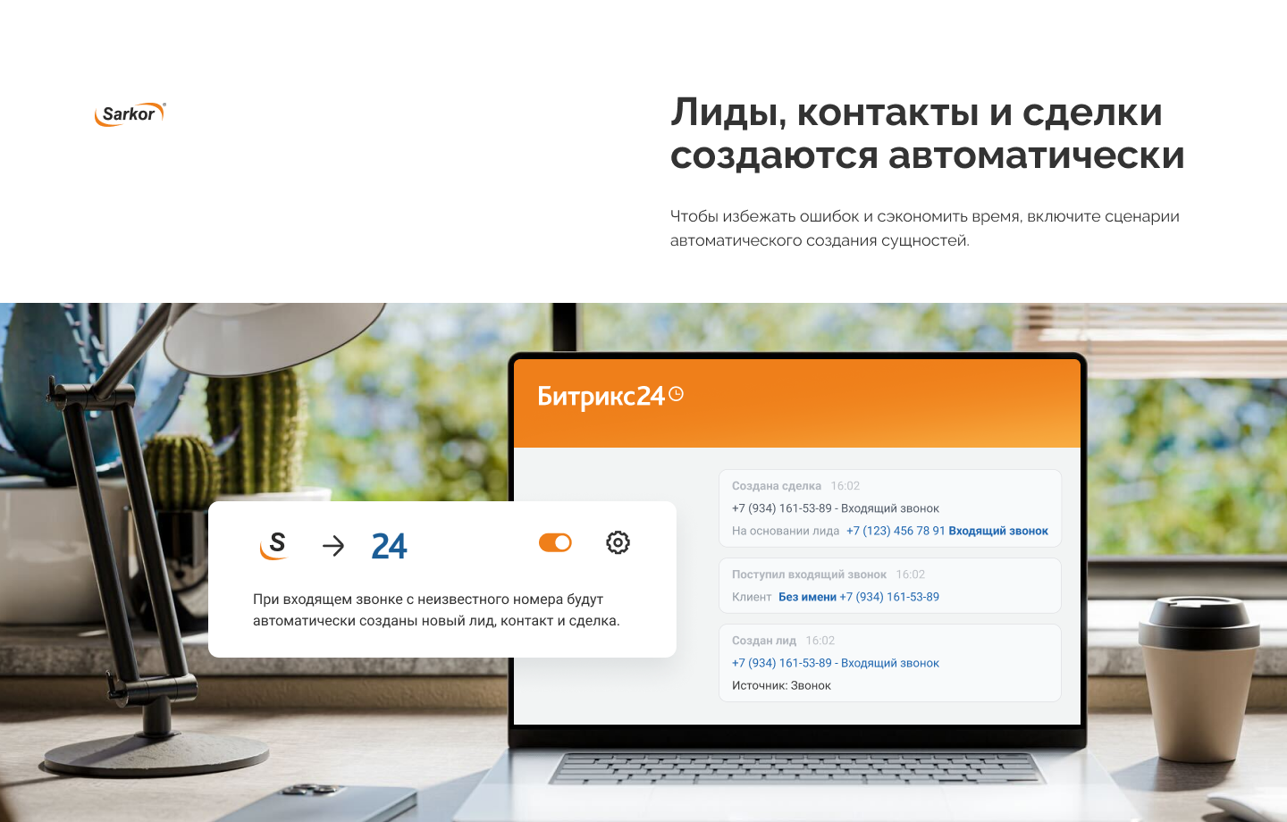 - Автоматическое создание лидов и сделок при звонках с новых номеров;