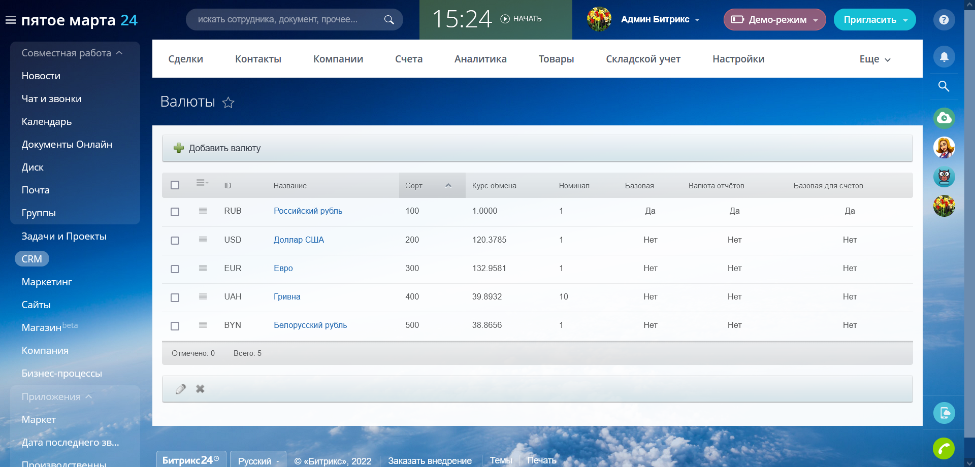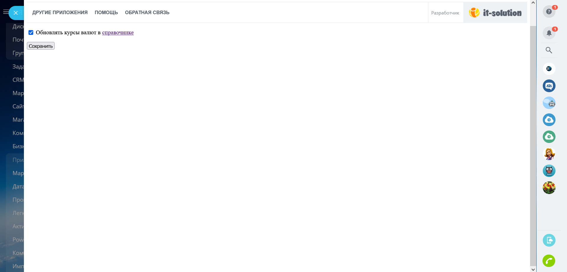 Приложение обновляет курсы валют в справочнике на вашем портале Битрикс24. Обновление происходит раз в час.