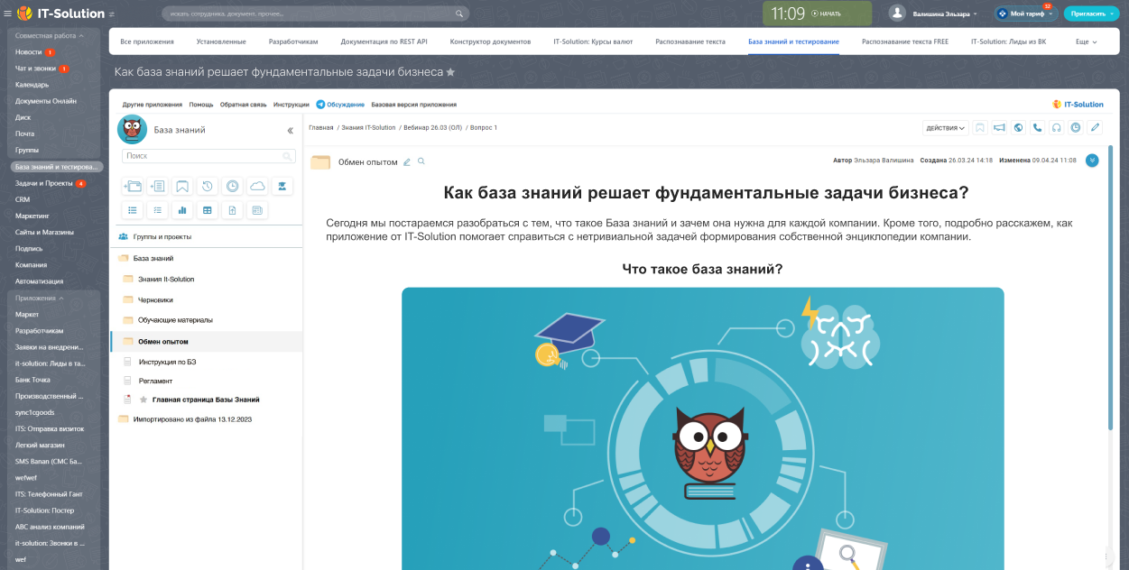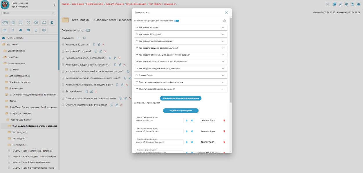 «База знаний и тестирование» — энциклопедия вашей компании!