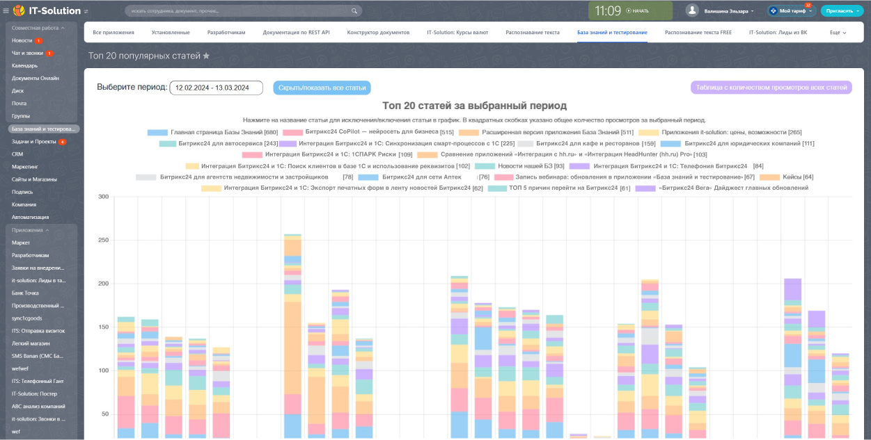 Данные по количеству статей в Базе знаний и персональная статистика пользователей.