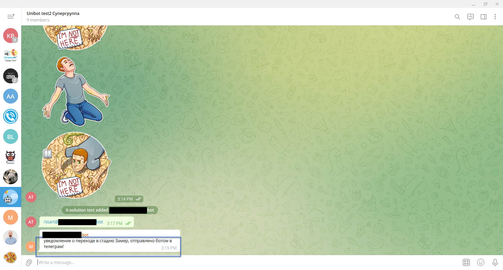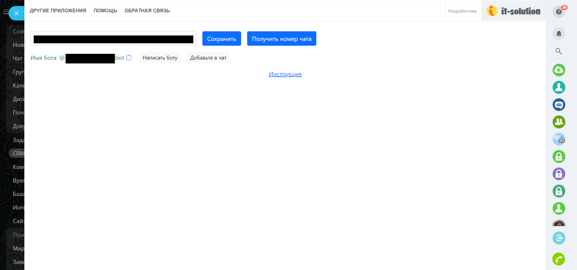 Приложение позволяет настроить робота для отправки сообщений в нужный вам чат Telegram, когда сущность CRM или задача попадает в стадию, где находится вышеназванный робот.