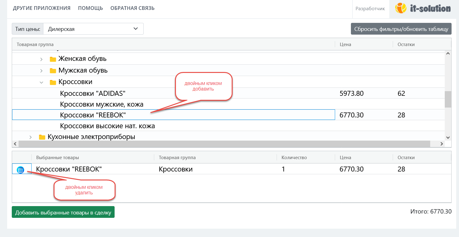 Инструкция к приложению «Подбор товаров из 1С»