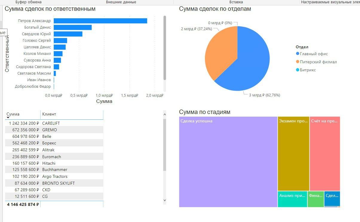 Интеграцию достаточно настроить один раз. Если на портале Битрикс24 появятся новые данные, вы сможете получить их, нажав на кнопку "Обновить" внутри самой программы Microsoft Power BI.