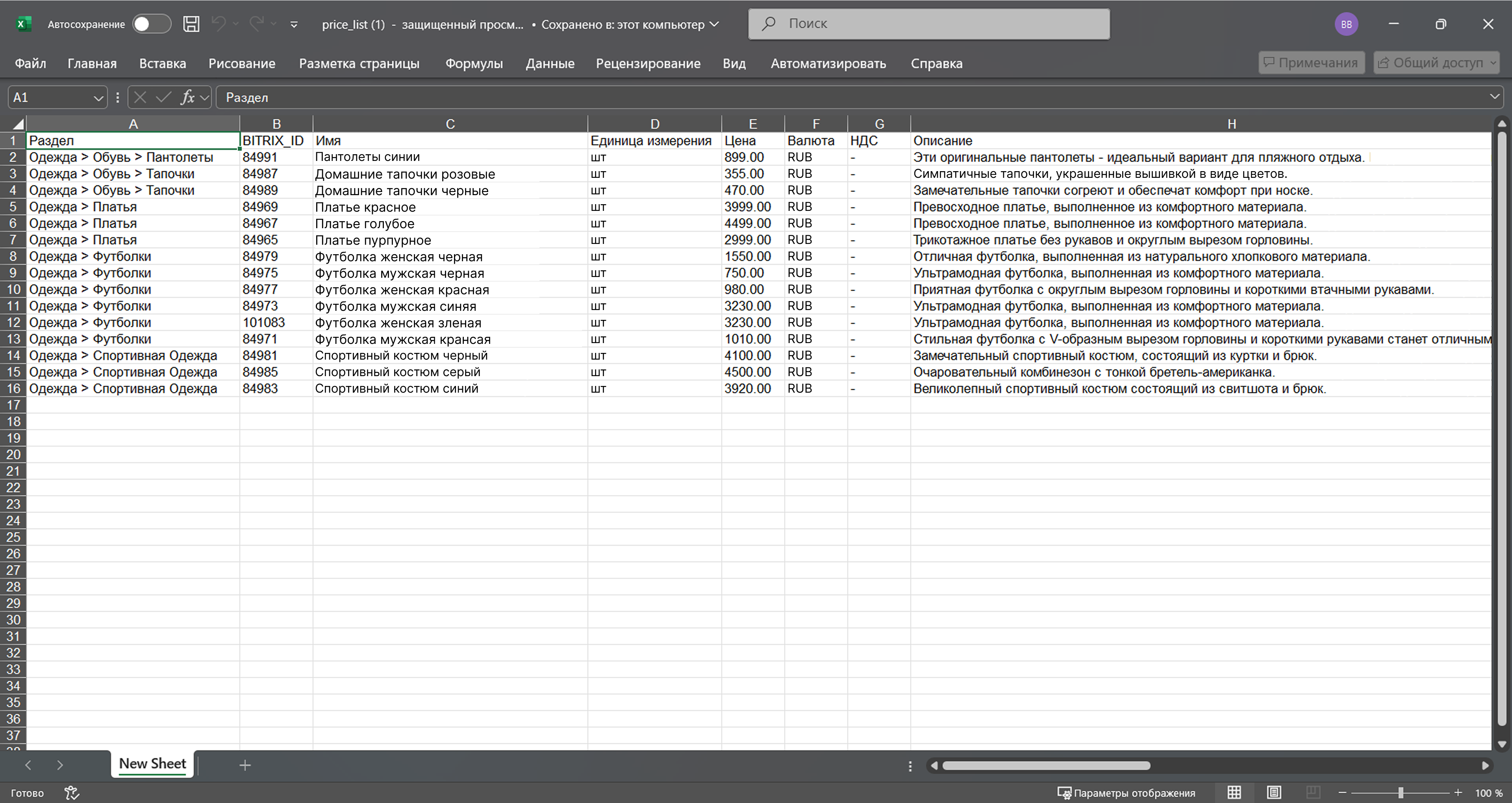 Приложение позволяет выгрузить товары из CRM Bitrix24 в Excel (XLS-файл)