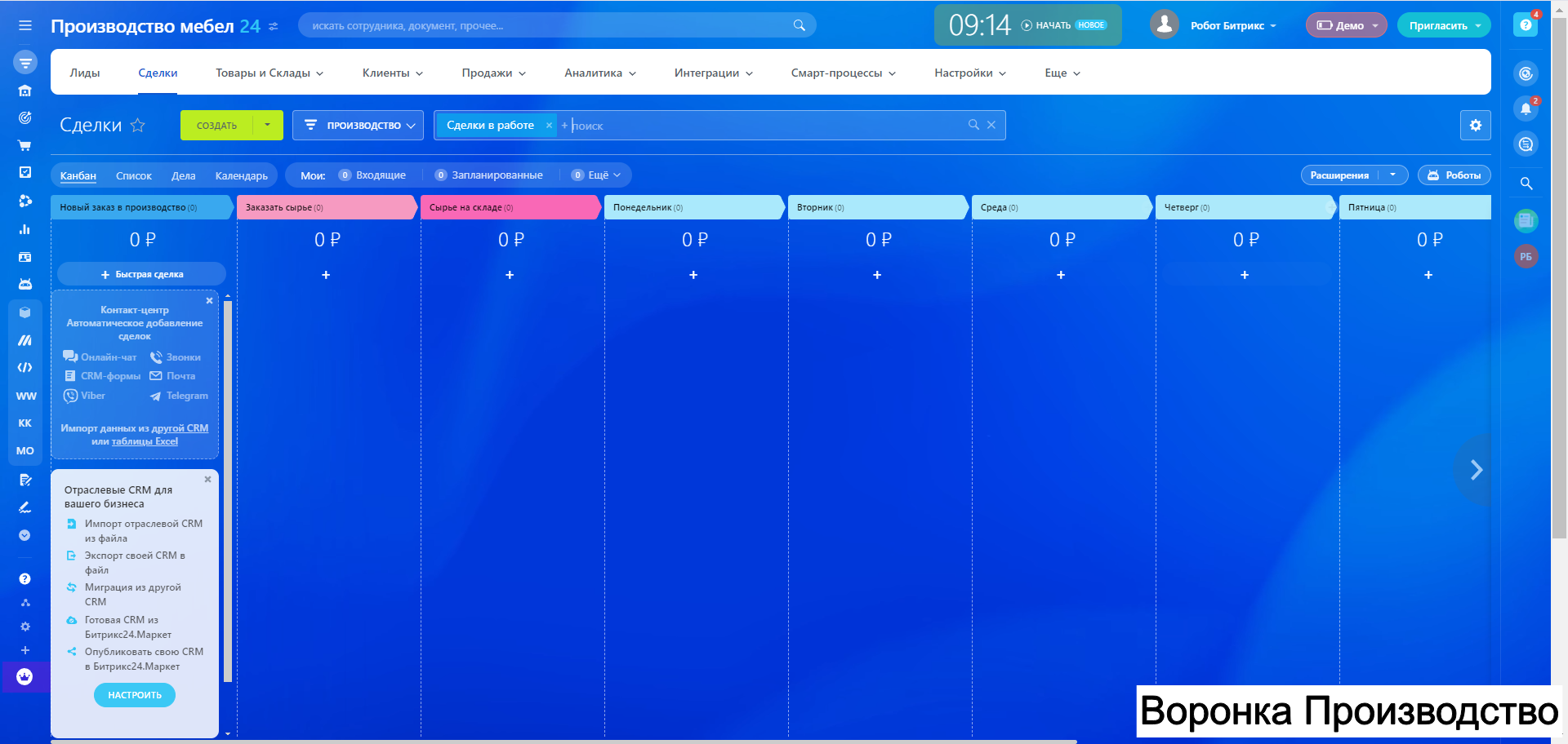 Готовая CRM для Производства МЕБЕЛИ - 10 воронок
