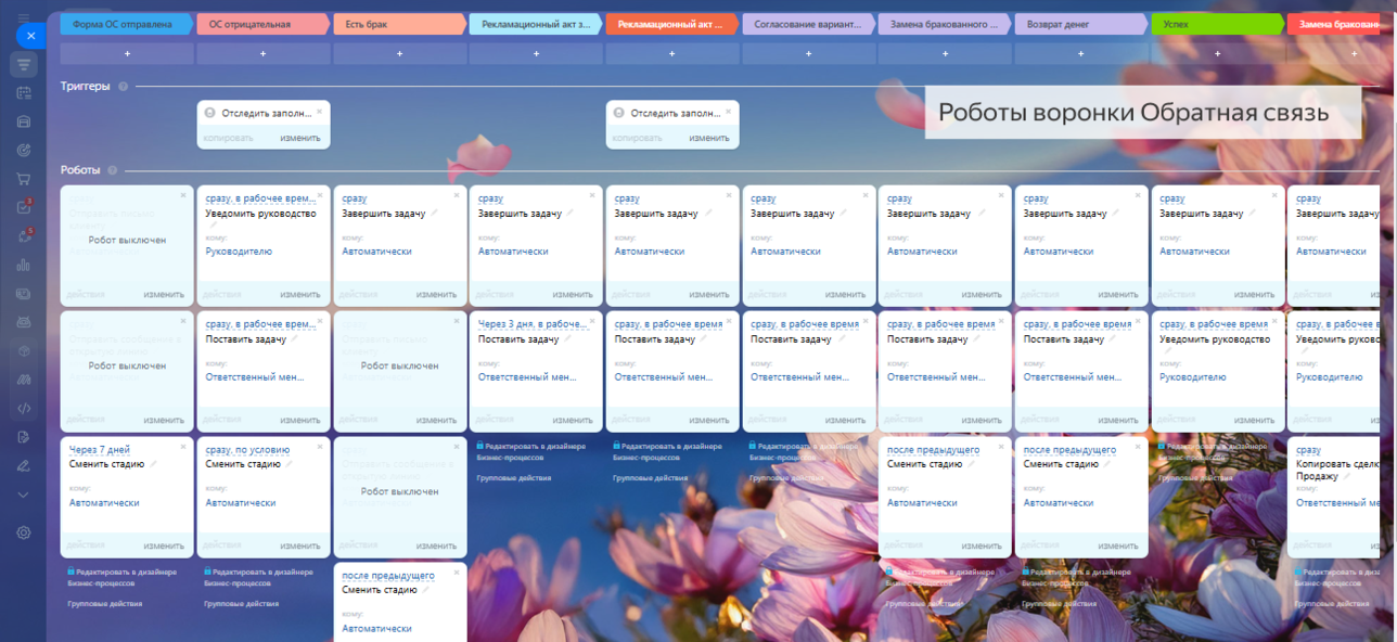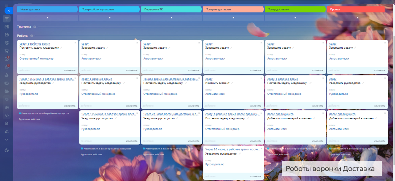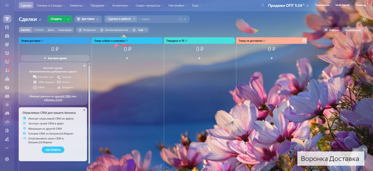 Готовое решение: 5 автоматизированных воронок продаж, закупок, доставки и обратной связи. Всё, что нужно для стабильной и прозрачной работы бизнеса — в одном понятном инструменте.