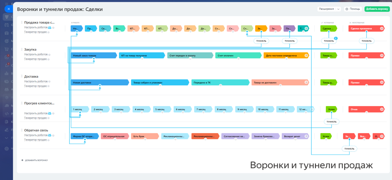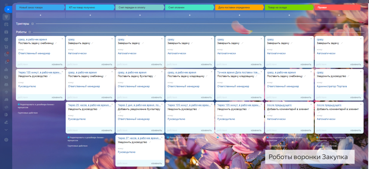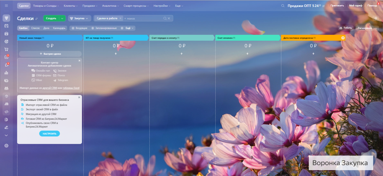 Хотите упростить управление продажами, закупками и логистикой? Наше готовое решение включает 5 автоматизированных воронок, которые охватывают весь цикл сделки: