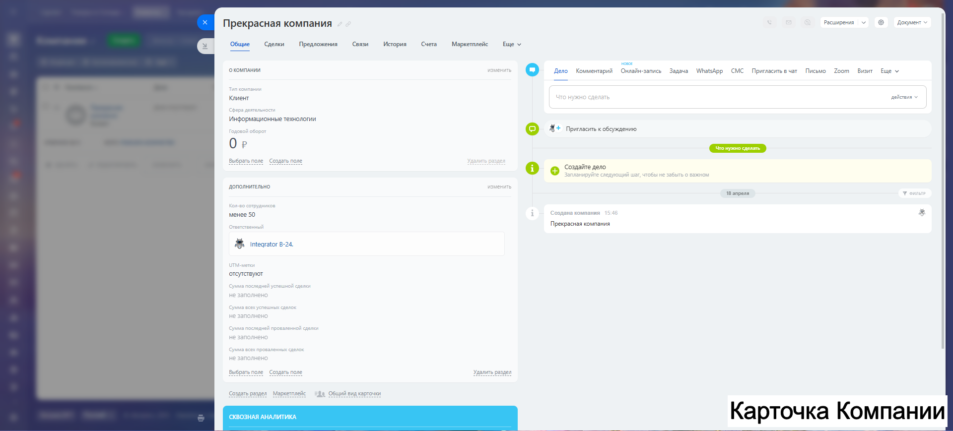 Благодаря гибким настройкам, автоматическим задачам и уведомлениям, вы сокращаете рутину, увеличиваете конверсию и удерживаете клиентов.