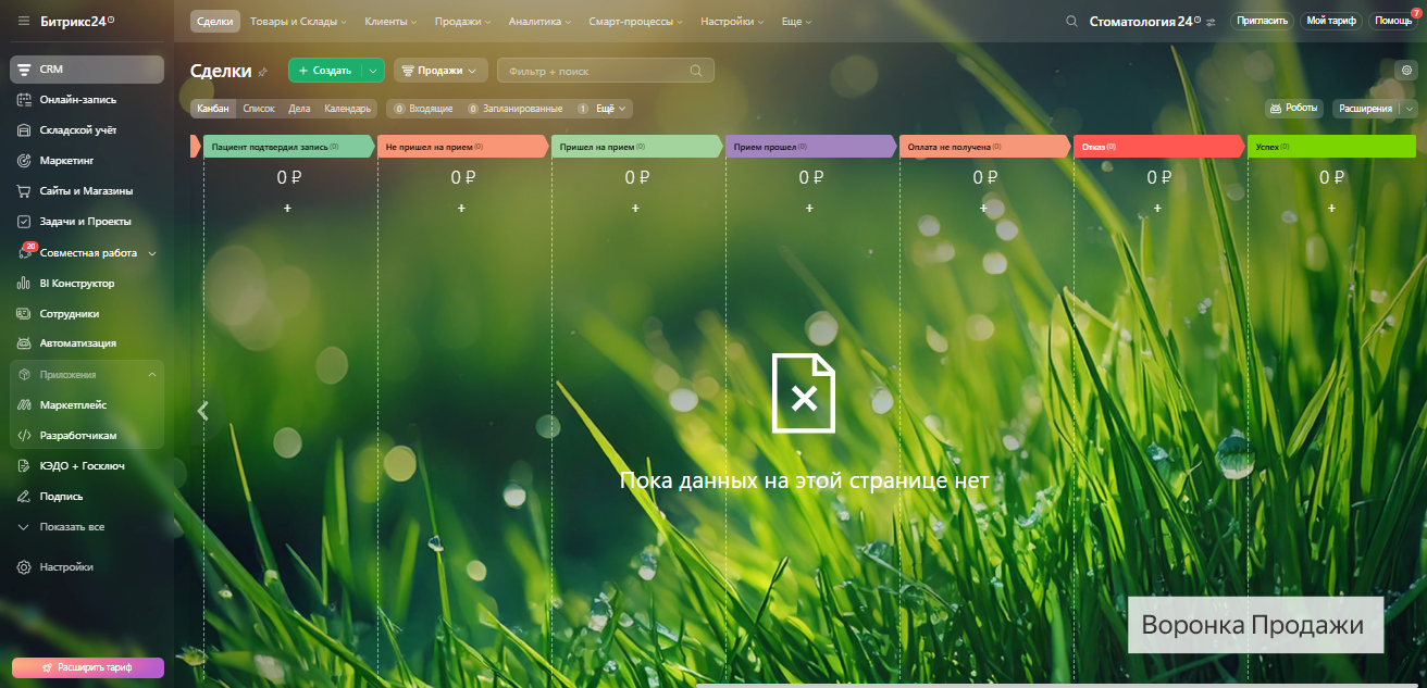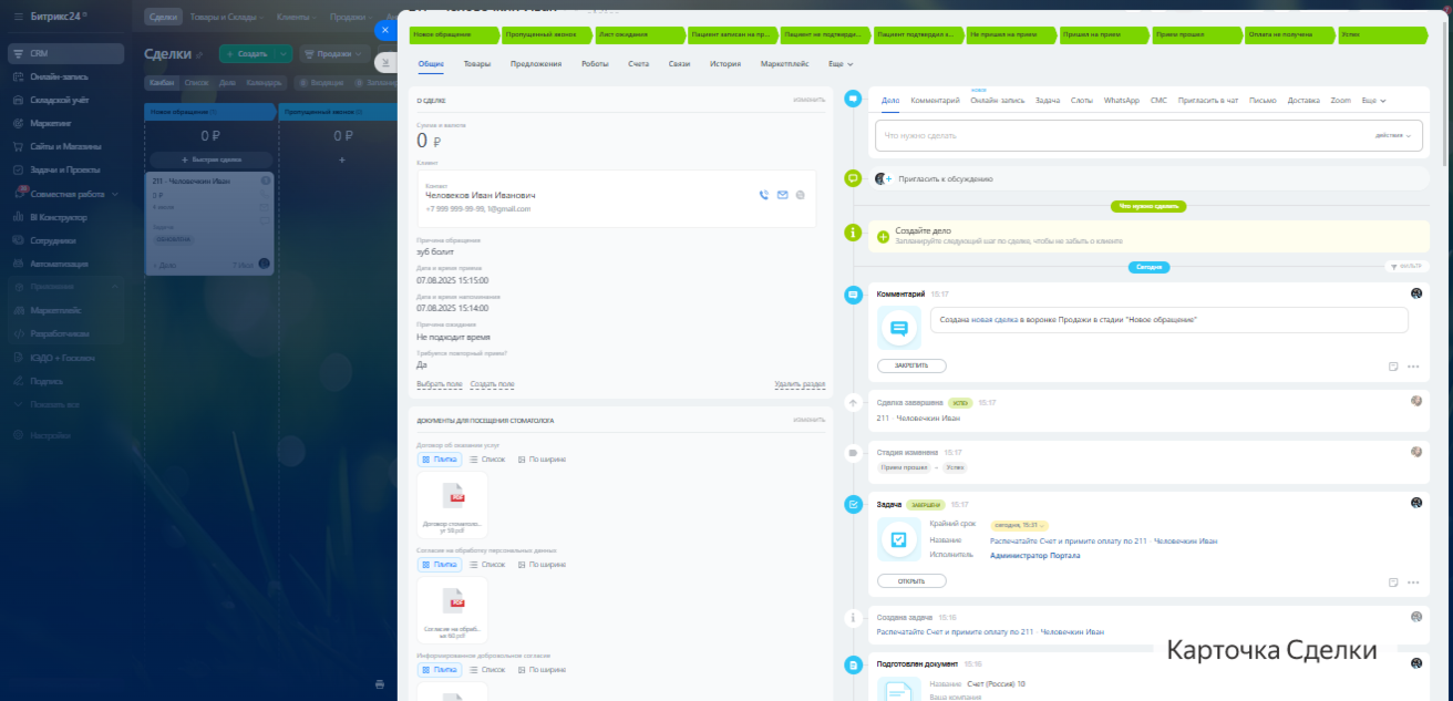 СТОМАТОЛОГИЯ - ГОТОВАЯ CRM система: 2 воронки автоматизации - приёмы и продажи. Запись пациентов, напоминания, автоматическое формирование договоров, контроль оплат, повторные записи.