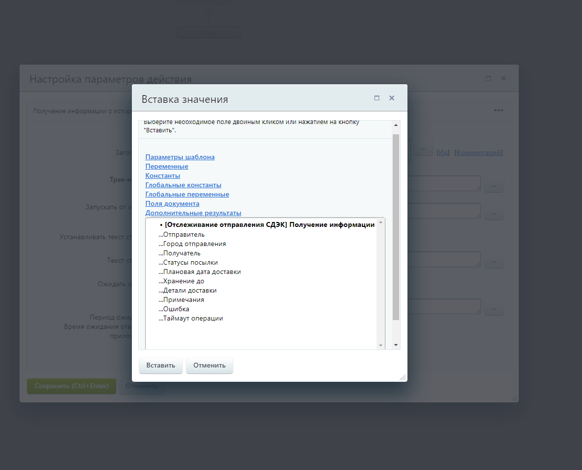 citySender => Место отправления