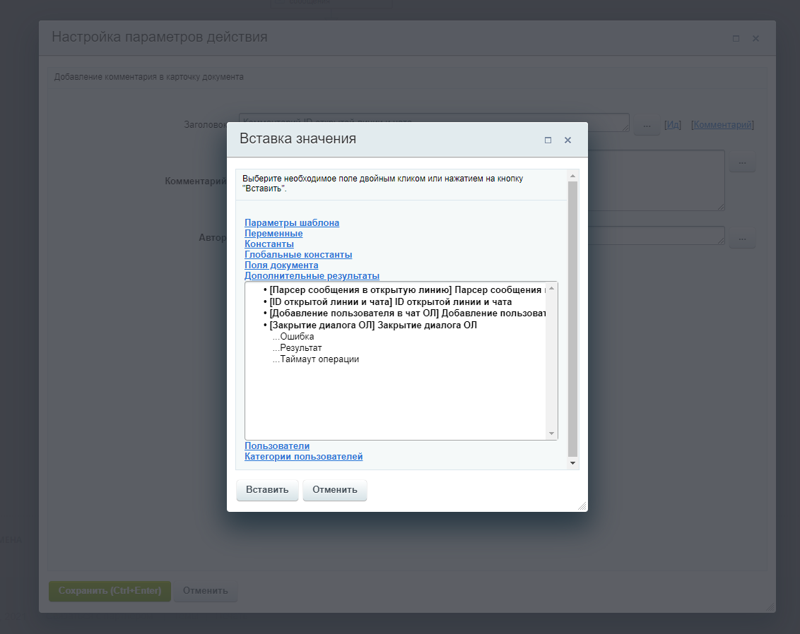 Для настройки полноценной автоматизации работы с диалогами открытых линий рекомендуем к установке другие наши активити: Парсер сообщений открытых линий, Добавление пользователя в чат ОЛ, ID открытой линии и чата, Переадресация диалога ОЛ