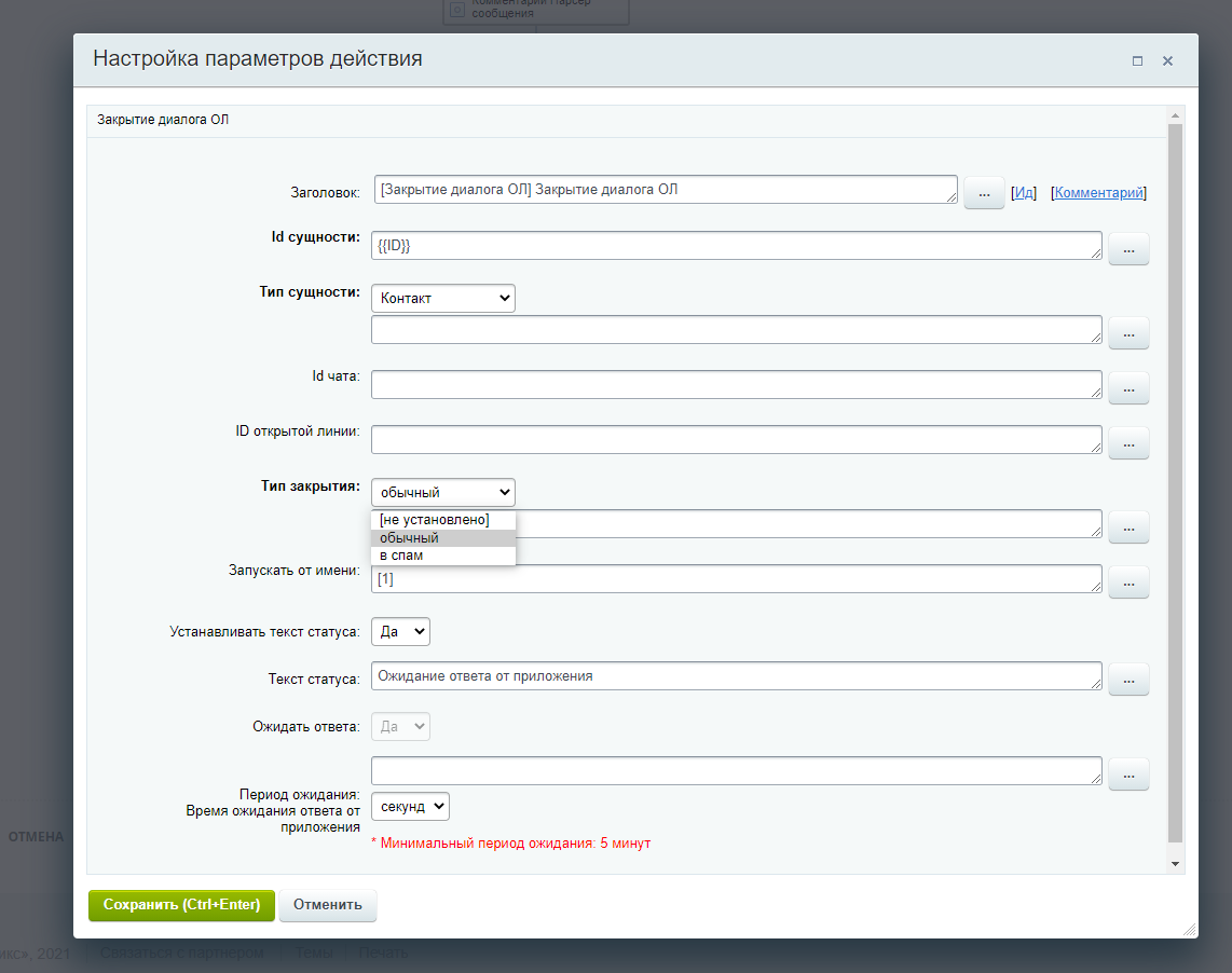 Активити для бизнес-процессов "Закрытие диалога ОЛ " - закрывает диалог открытой линии обычным способом или "в спам"