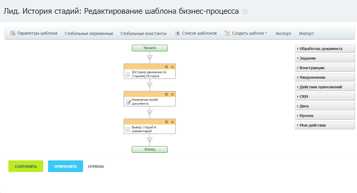 Помимо этого активити возвращает полный список кодов стадий, через которые проходил Лид или Сделка, в обратном хронологическом порядке.