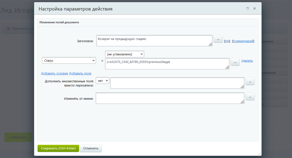 Часто в бизнес-процессах возникает необходимость автоматически вернуть Лид, Сделку, счёт или элемент смарт-процесса на предыдущую стадию (например, при несанкционированном или некорректном переносе). К сожалению, стандартными средствами невозможно определить, в какой стадии находился элемент перед переносом.