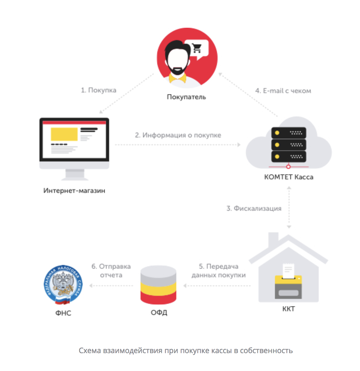 Плагин реагирует на изменение статуса оплаты счета, и отправляет данные об оплате на сервис КОМТЕТ Касса для фискализации на подключенном оборудовании, после фискализации электронный чек будет отправлен покупателю.Вы можете взять оборудование в аренду или приобрести его в собственность, возможные варианты решений и стоимость можно узнать на сайте.