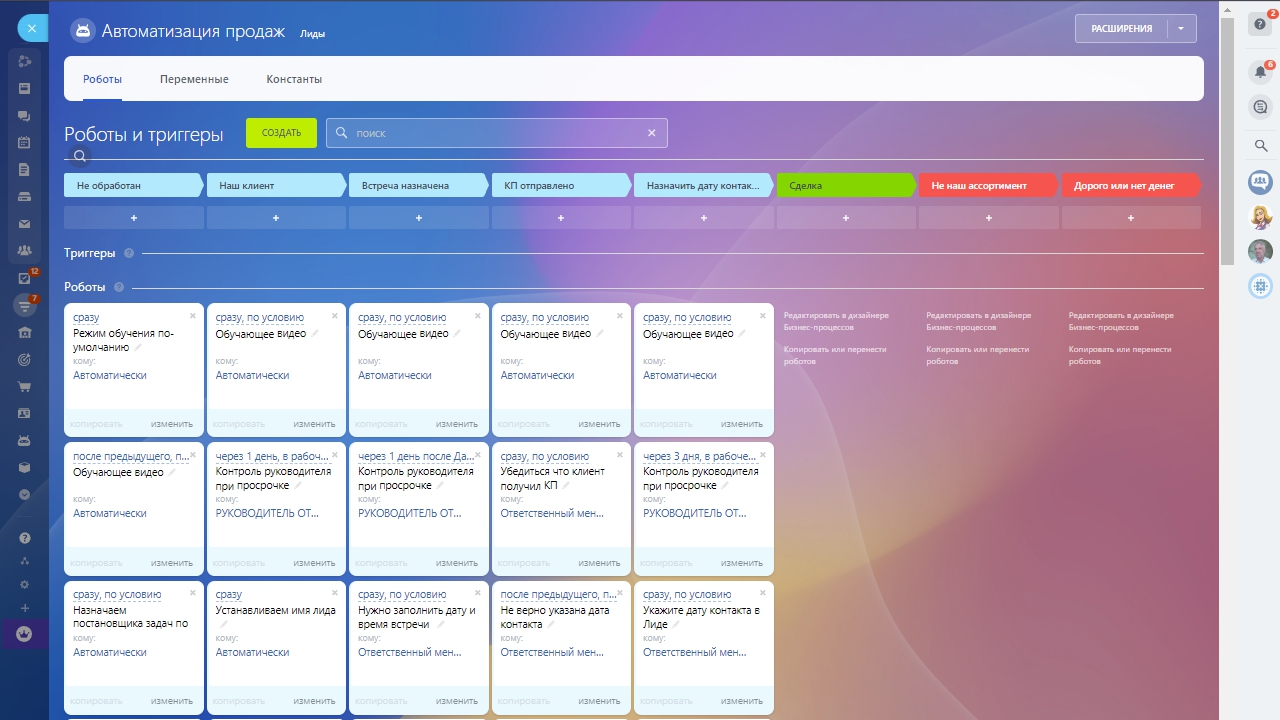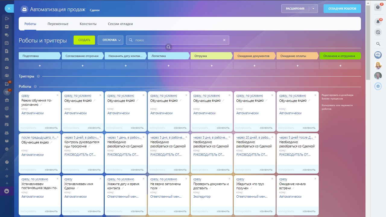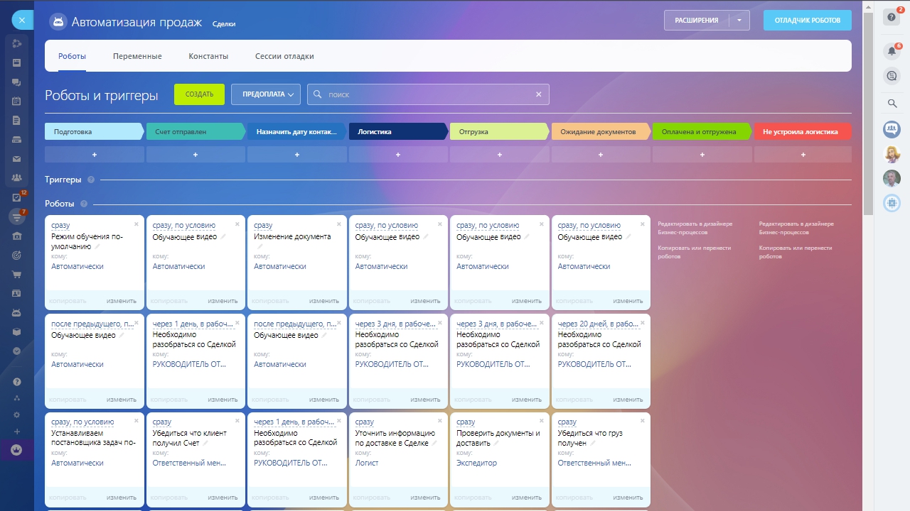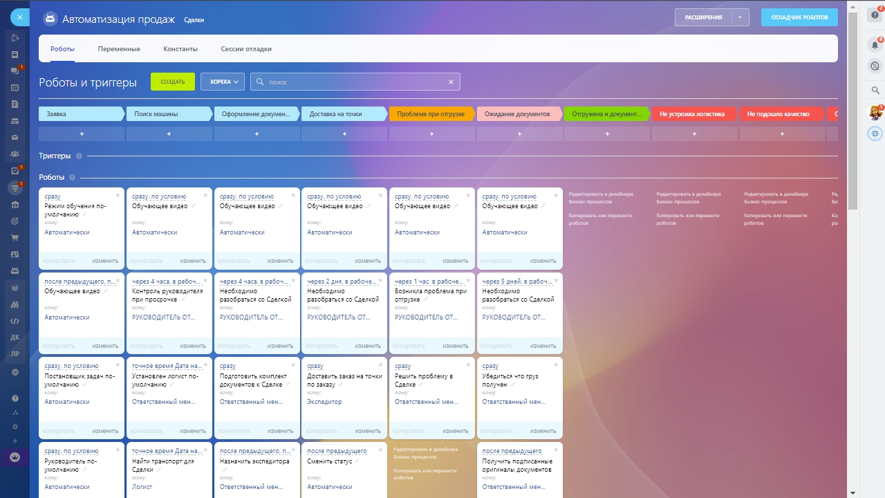- Более 150 роботов контролируют работу - Мы настроили более 100 роботов, которые создают задачи для сотрудников и проверяют правильность заполнения полей.