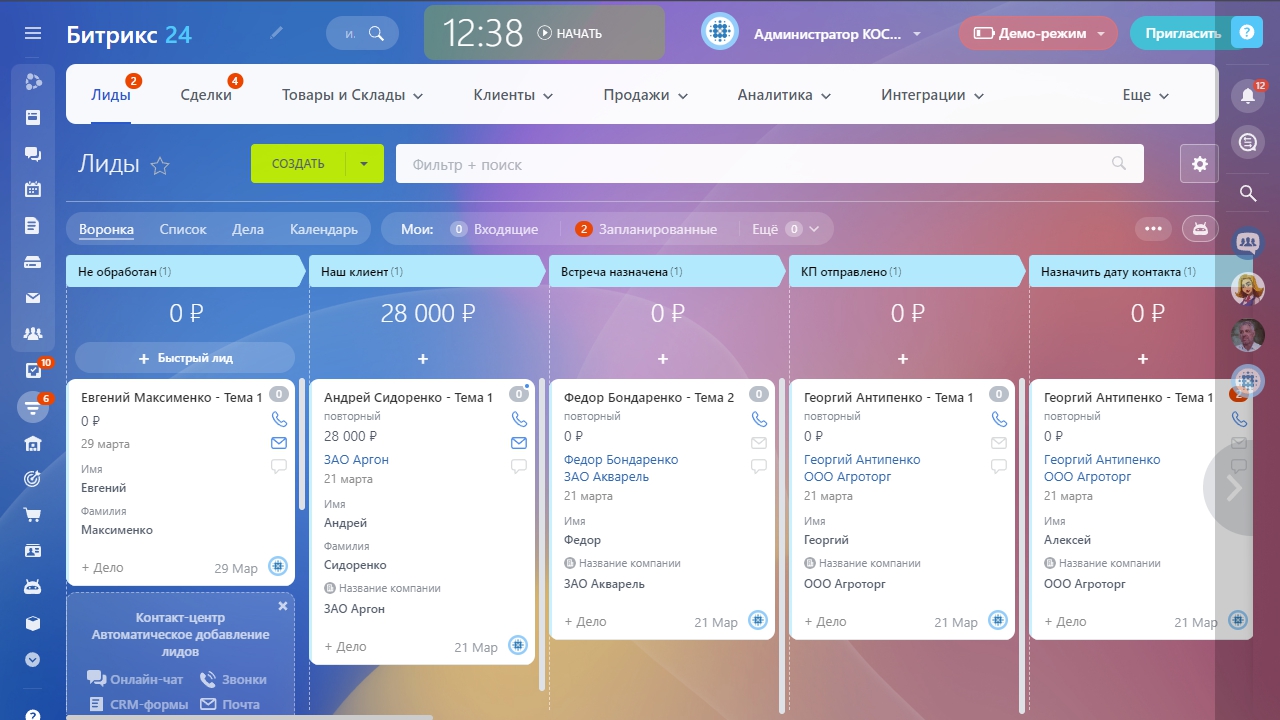 - Настроена воронка Лида - Проработаны статусы Лида, которые помогут эффективно взаимодействовать с клиентом до возникновения Сделок.