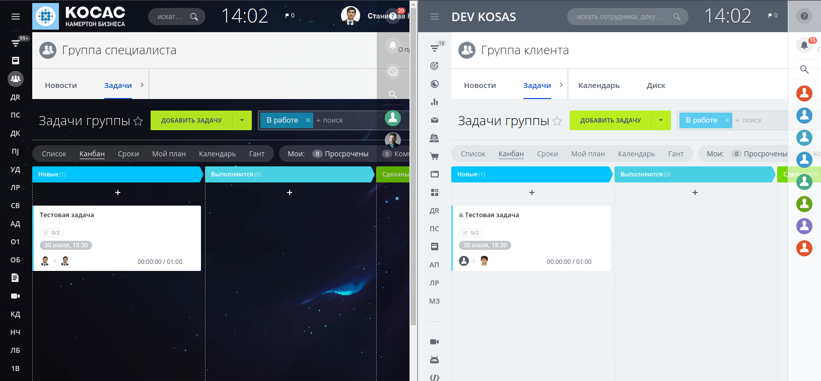 7. Зайдите в группу специалиста или клиента и создайте в ней задачу. Она тут же появится на другом портале.