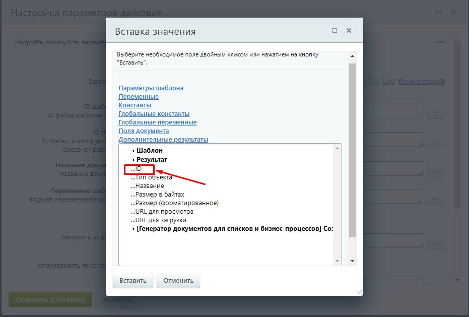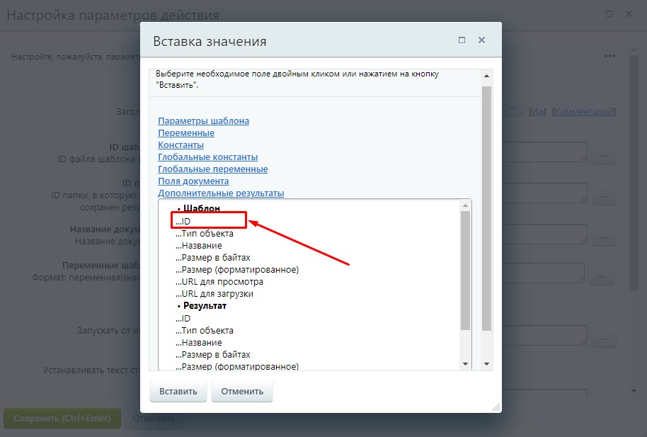 В поле «ID папки: ID папки», в которую будет сохранен результат (Рисунок 11).