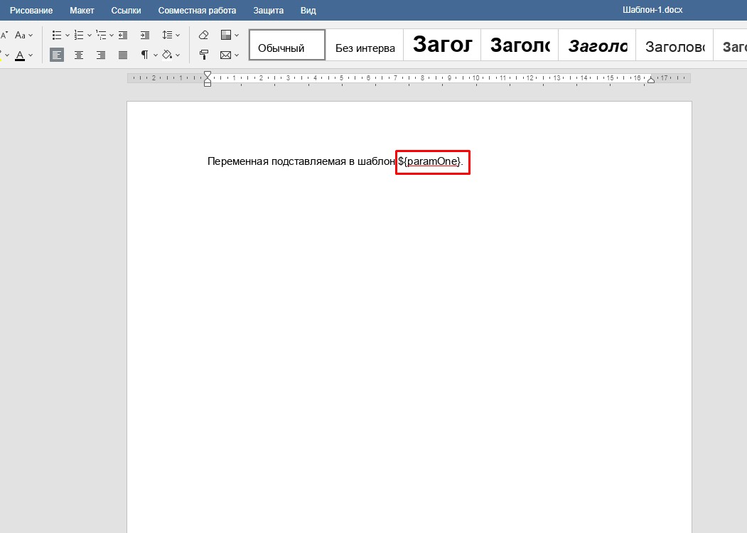 2. Создать шаблон документа, где вставляемые значения будут иметь вид ${paramOne}. Где «${…}» - служебная часть, а «paramOne» - значения, заданные в настройках активити «[Генератор документов для списков и бизнес-процессов] Создать файл» (Рисунок 2).