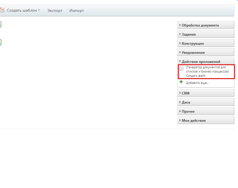 В конструкторе бизнес-процессах модуля «Списки» в ленте появится активити «[Генератор документов для списков и бизнес-процессов] Создать файл» (Рисунок 2).
