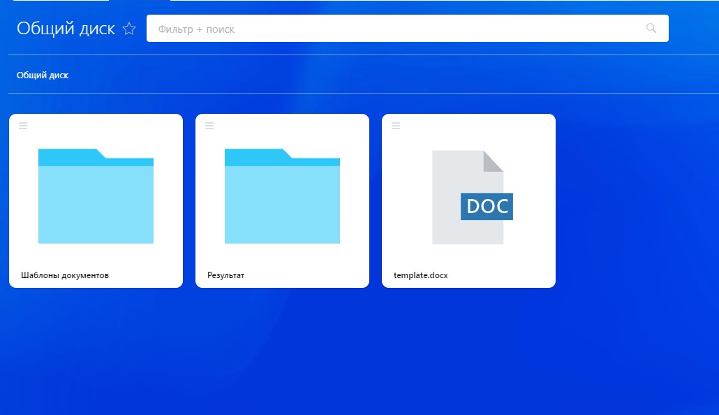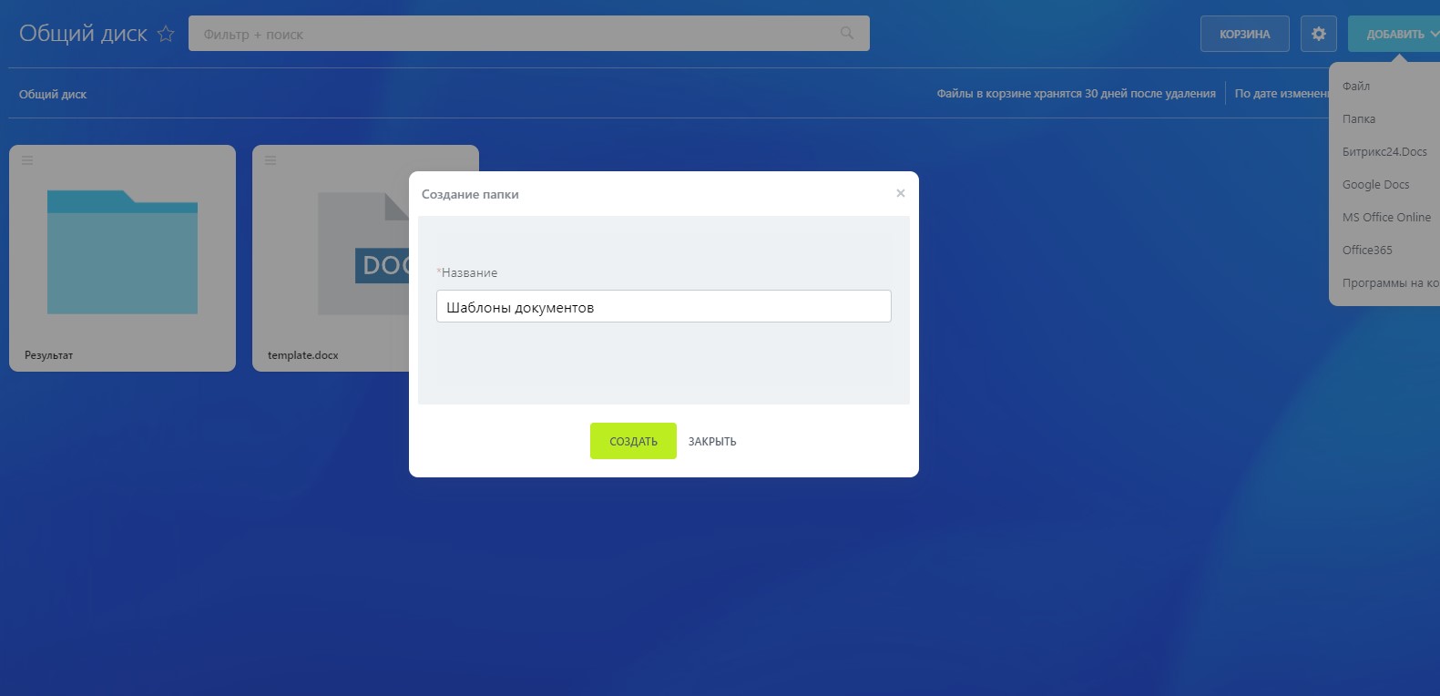 4. В папке Диска необходимо создать папку для хранения результатов генерации документов (Рисунок 4).