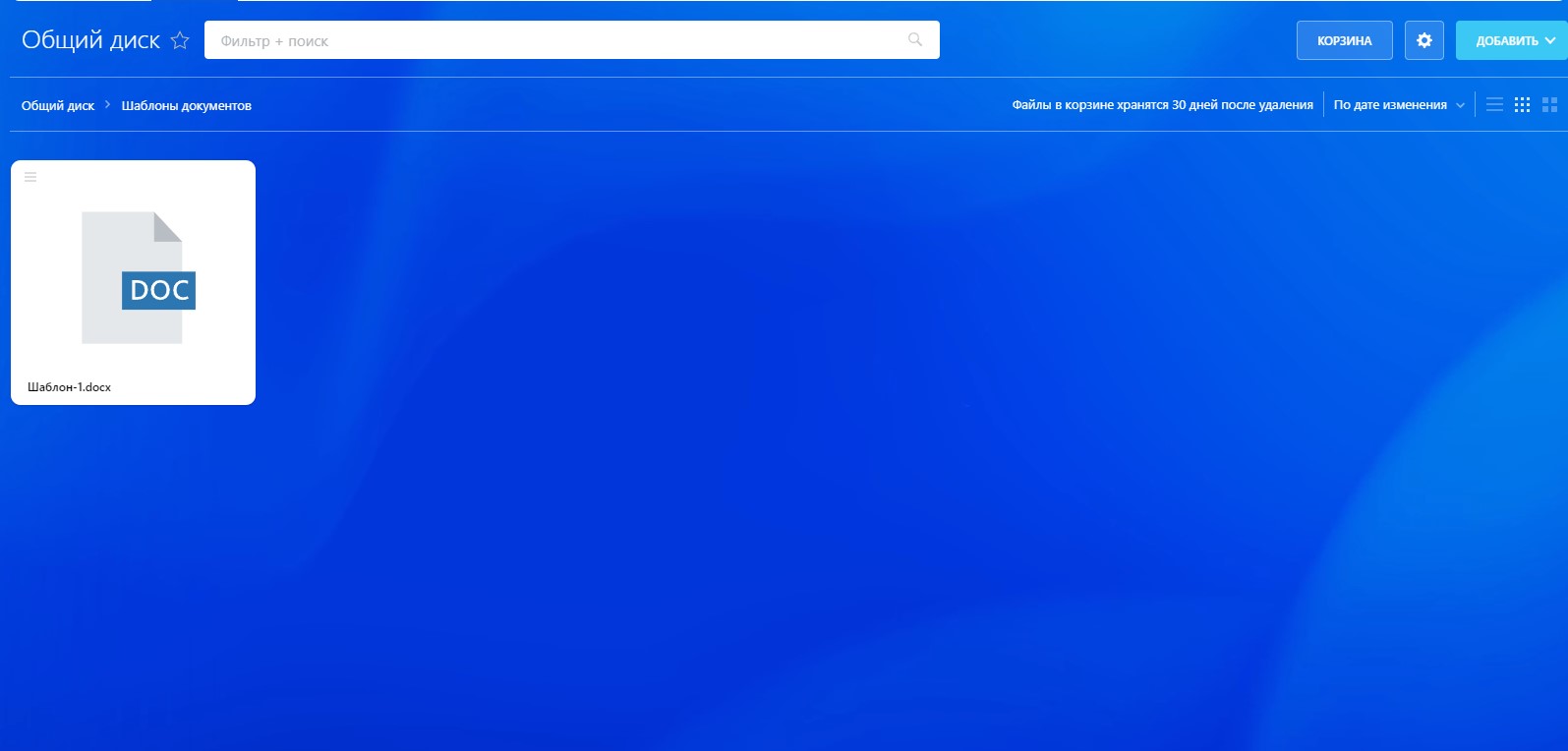 1. В Диск необходимо создать папку для хранения шаблонов документов (Рисунок 1).