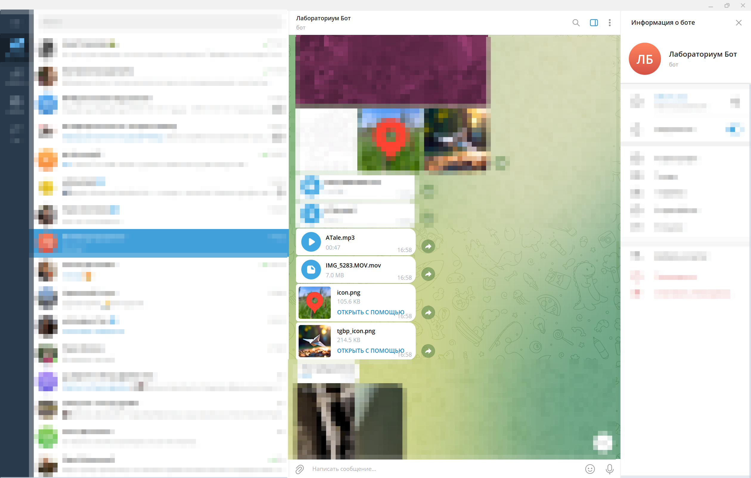 Приложение поддерживает работу с любым кол-вом Telegram ботов.