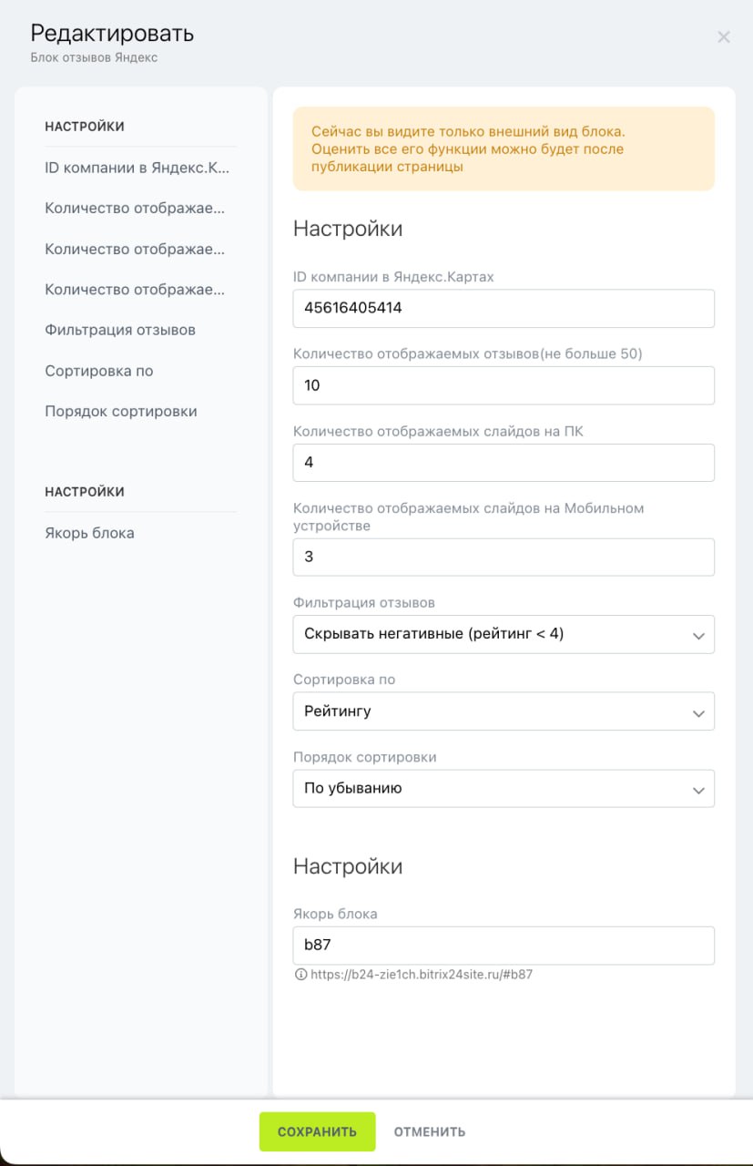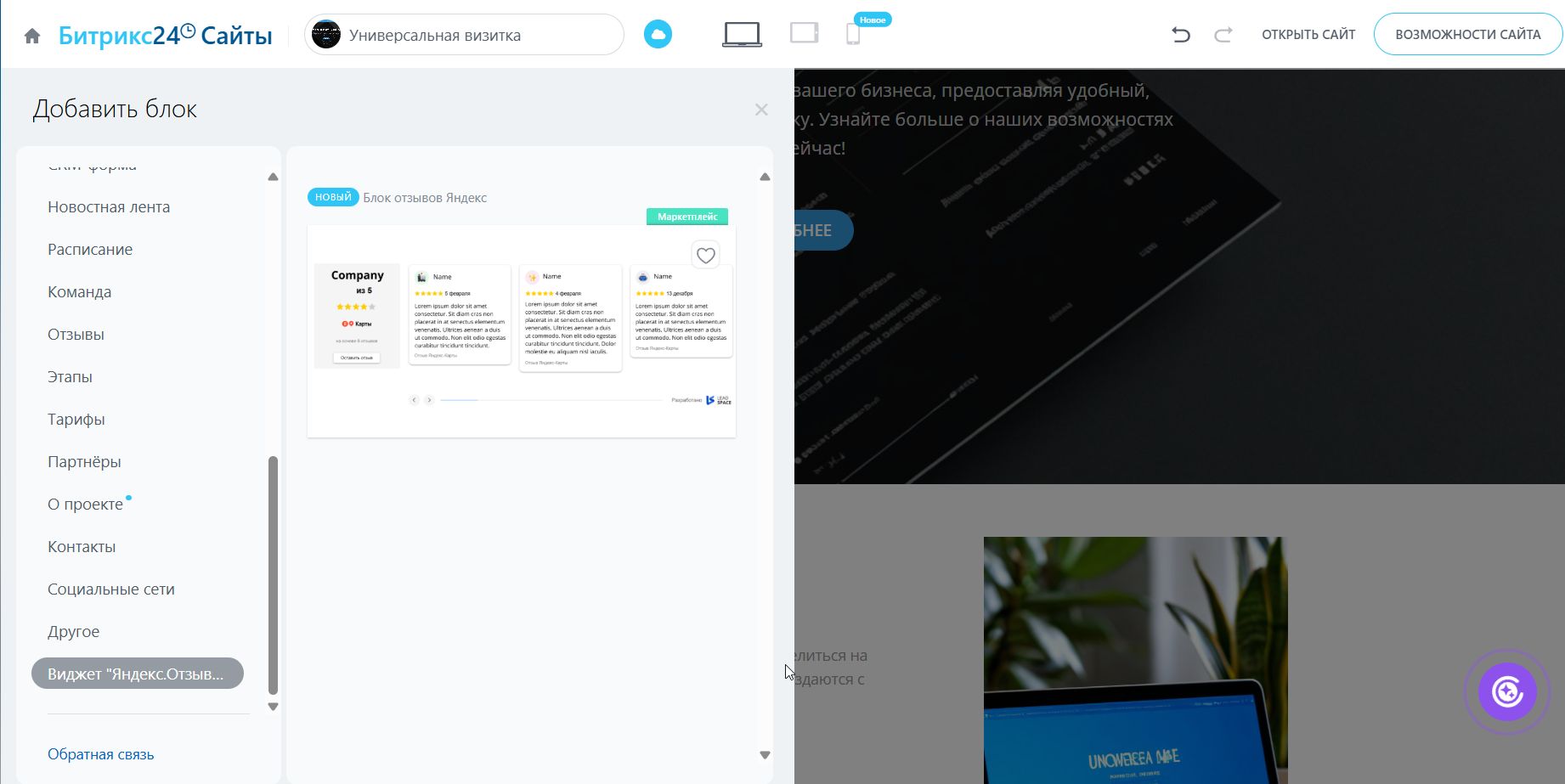 Виджет "Яндекс.Отзывы" для конструктора сайтов Б24