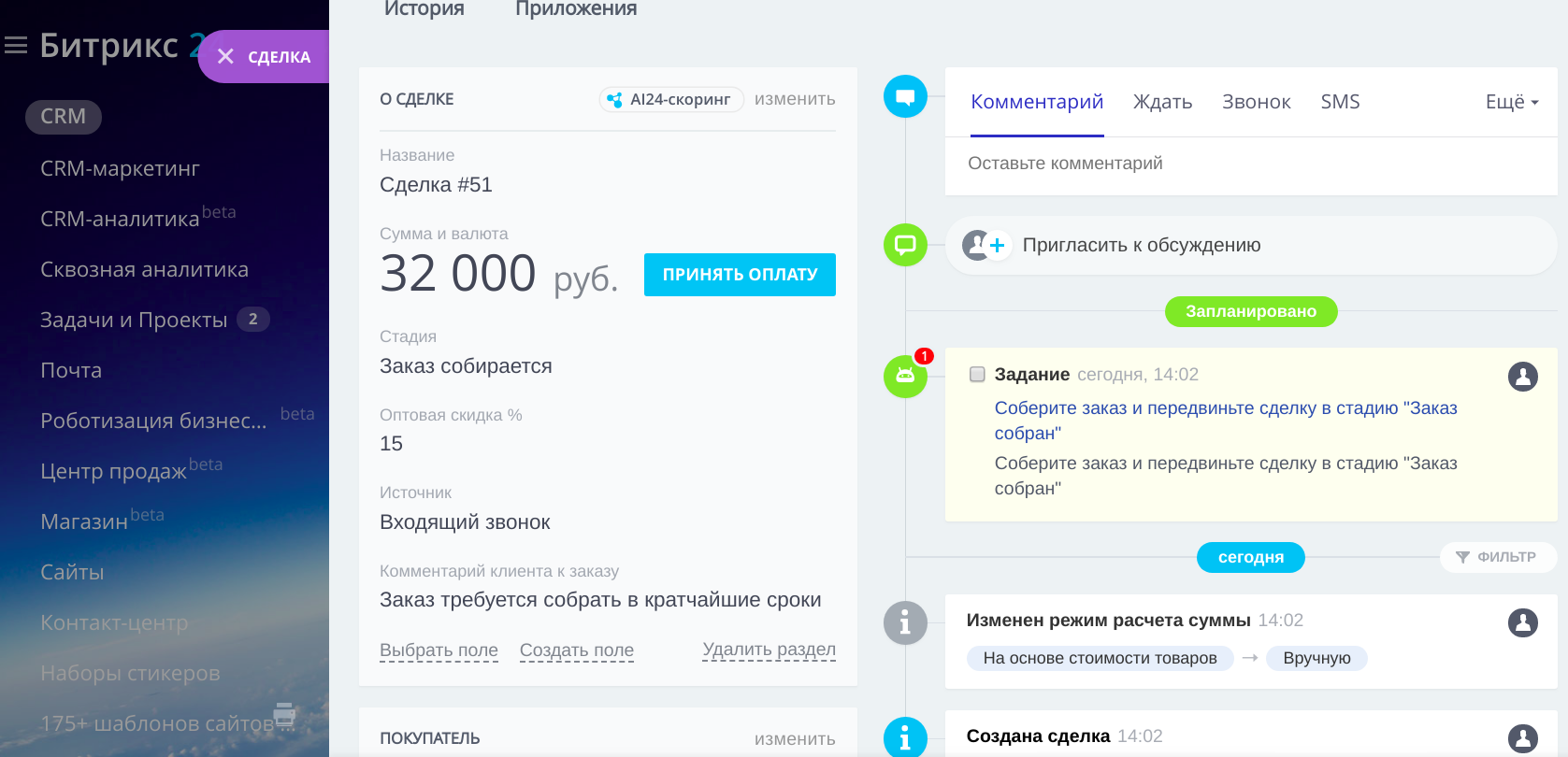 Решение помогает решать такие задачи, как организация процесса продажи и доставки товаров. Также в конфигурацию входит бизнес-процесс поздравления клиентов с днем рождения!