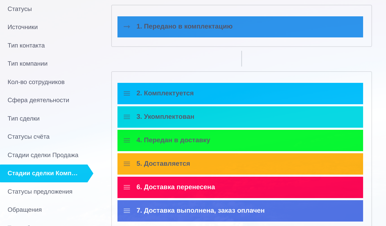 - Стадии воронки лидов и сделок