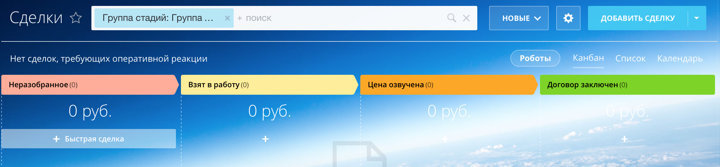 Мы уже настроили этапы, карточки сделок, контактов и компаний для того, чтобы вам было проще разобраться в системе.
