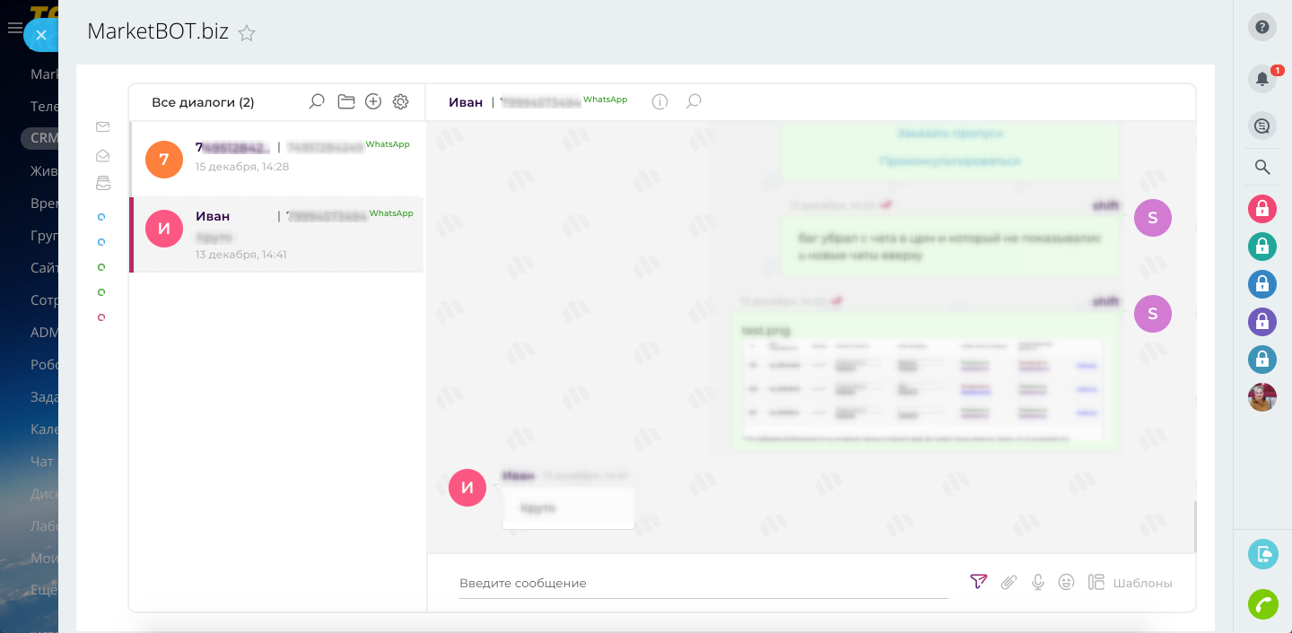 Платформа для обмена сообщениями с клиентами через мессенджеры и социальные сети + конструктор чат ботов и автоворонок. Работает на официальном канале WhatsApp Business API. Стоимость уточняйте у менеджера.