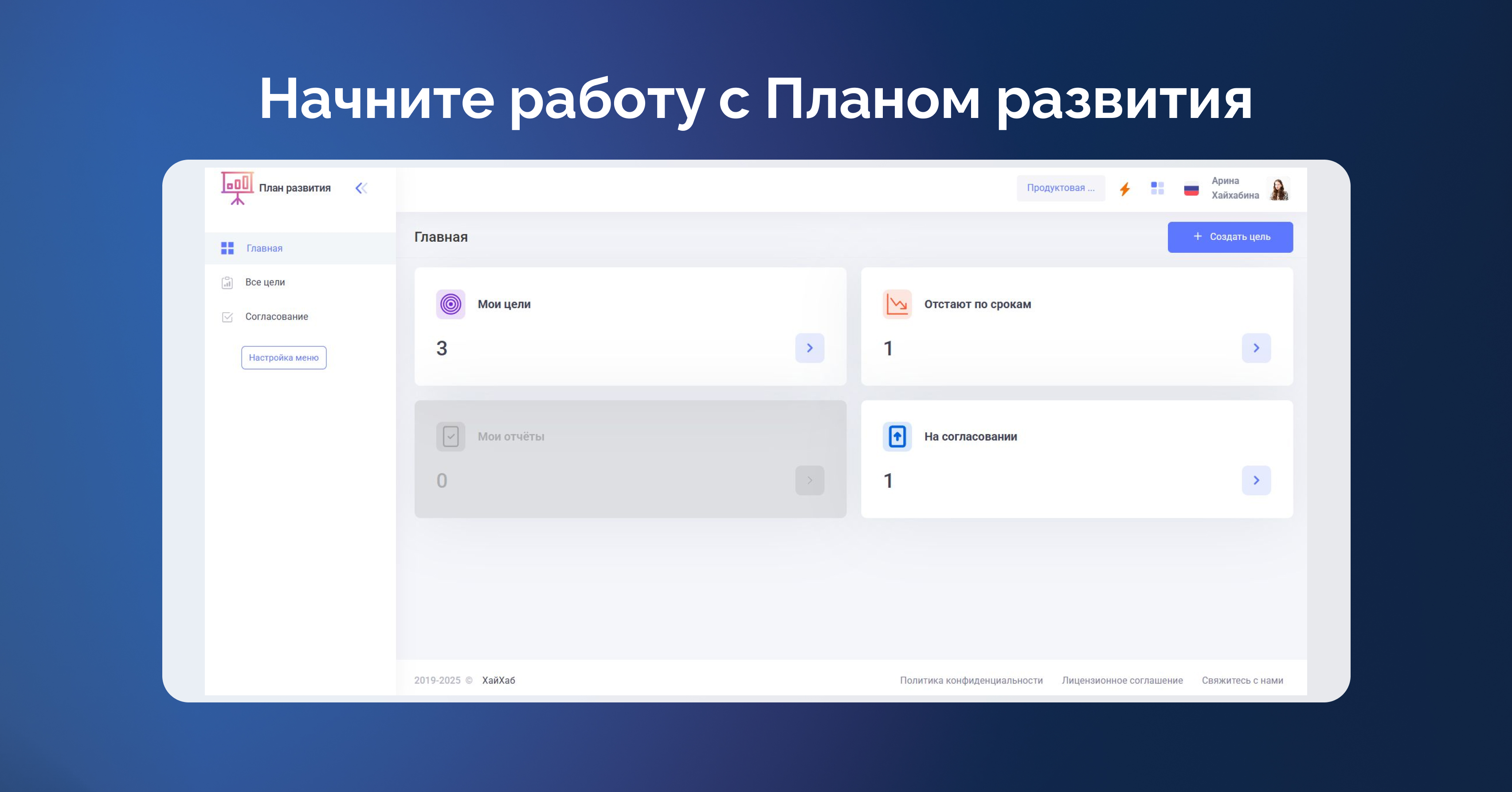 Пользователь — видит цели, где он указан в роли ответственного или согласующего. Может создавать цели для себя и коллег.