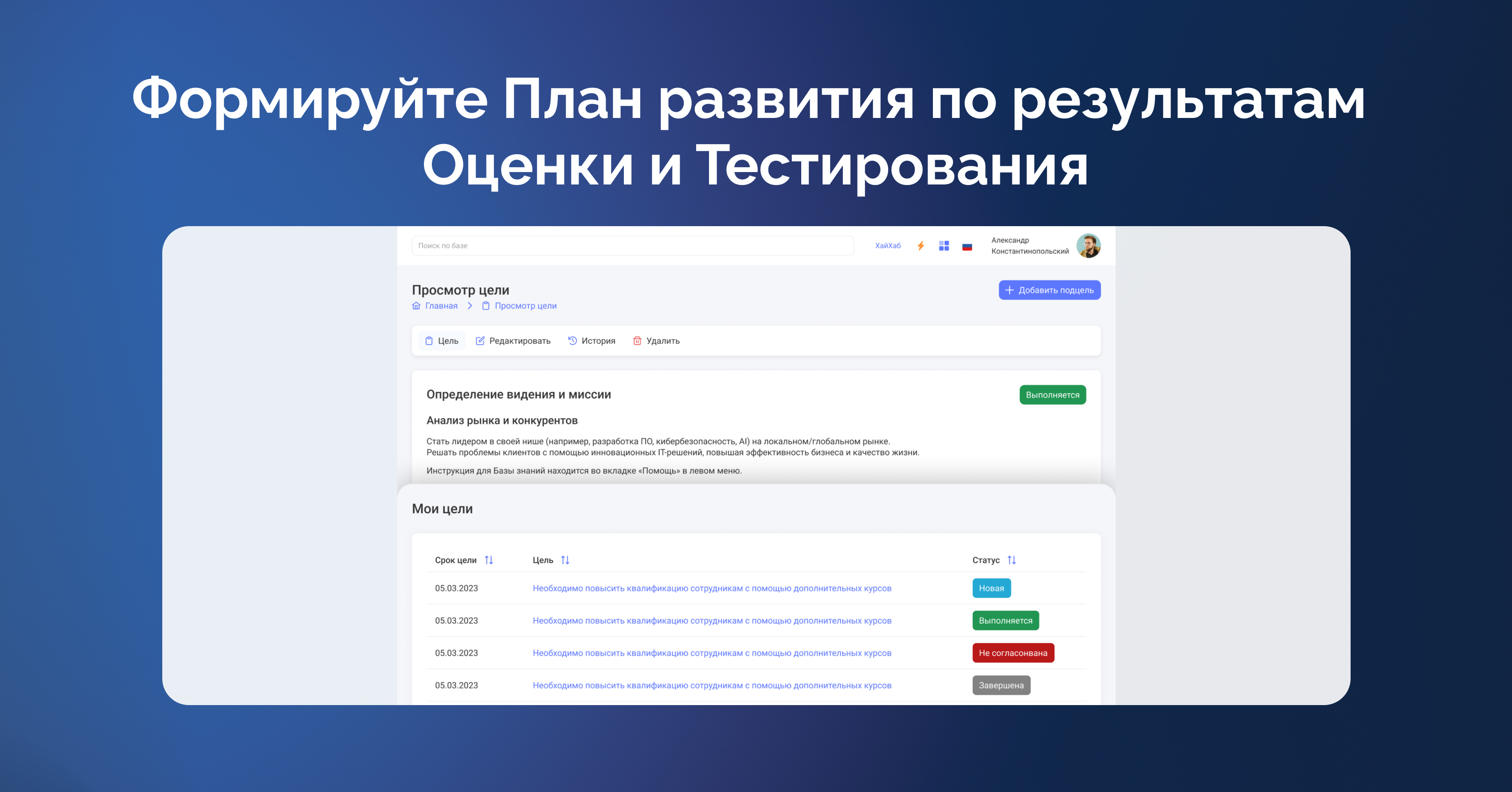 - План развития — отличное дополнение к сервису «Оценка персонала» из экосистемы ХайХаба. Формируйте индивидуальный план развития по компетенциям, ставьте цели после проведения оценки и следите за результатами.