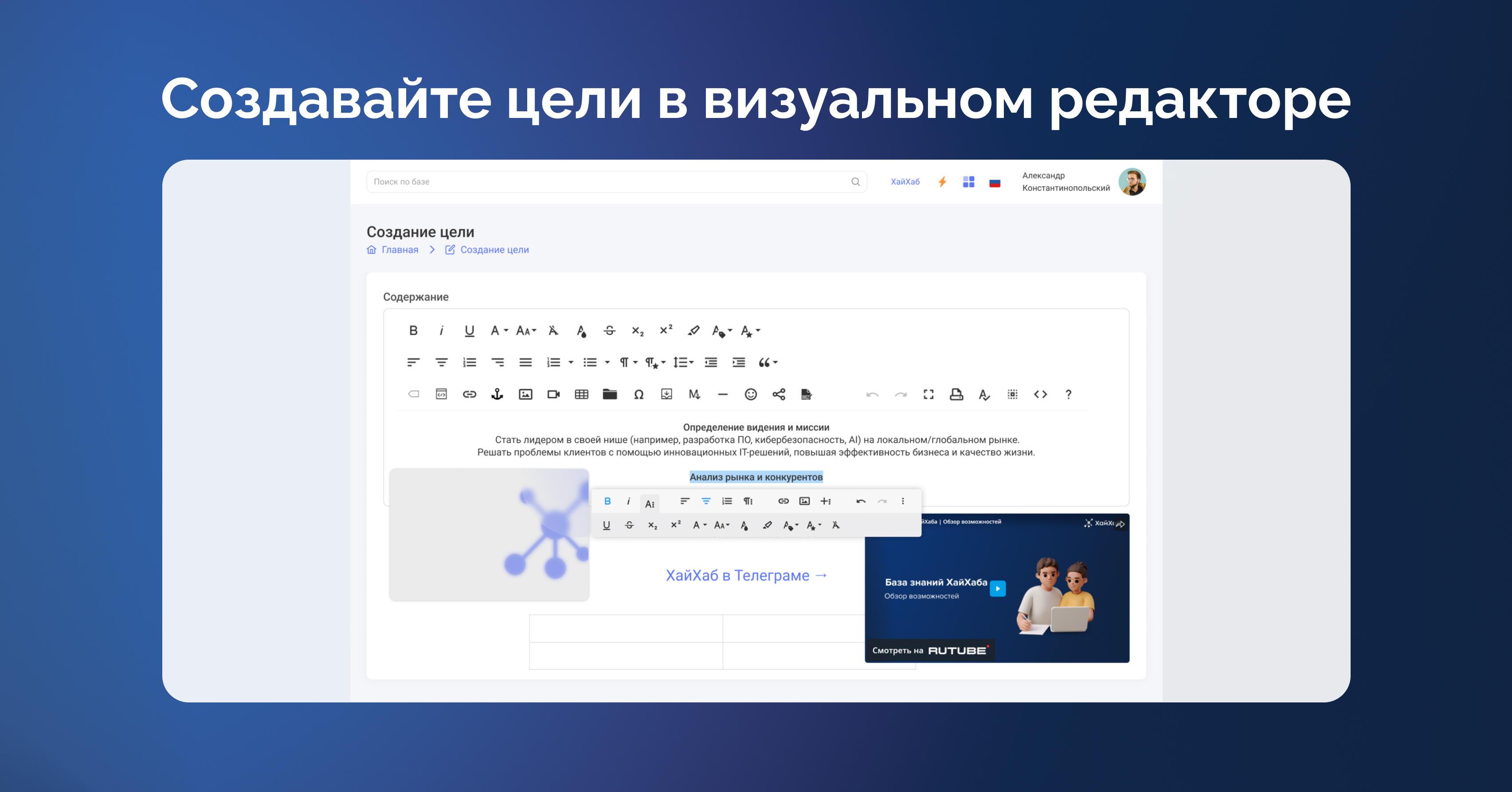 Создать цель может любой сотрудник без помощи Администратора. В карточке цели обязательно указывайте название и участников цели, а также описание, время на выполнение и компетенции при необходимости.