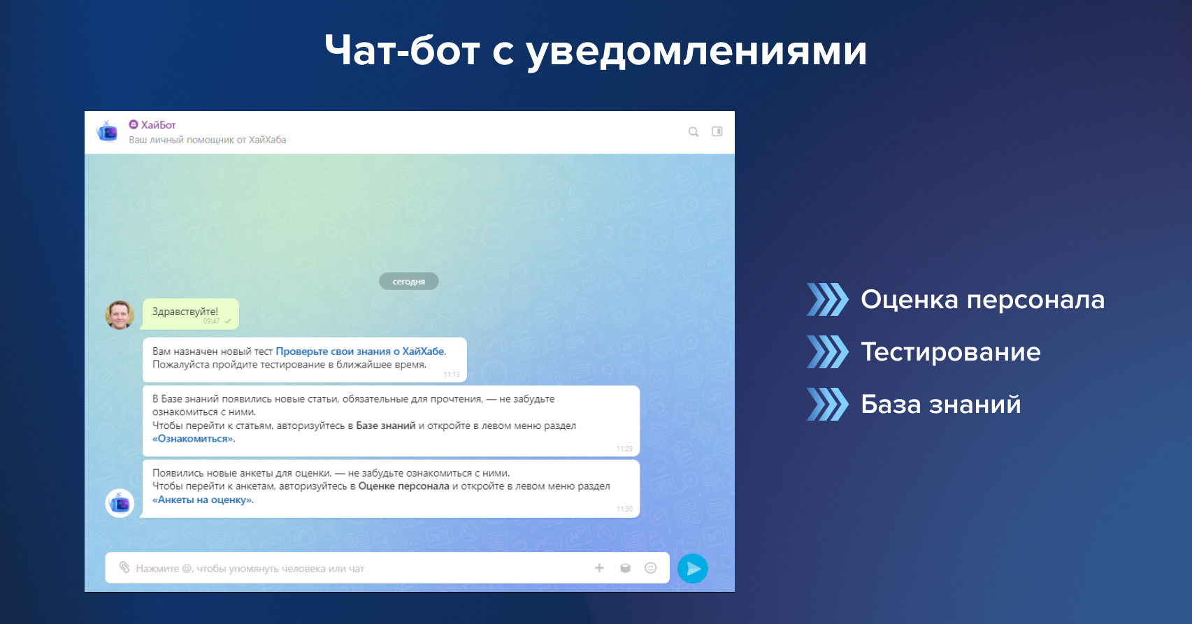 Сервис является частью ХайХаба — системы для управления человеческим капиталом, знаниями и информацией в компании.